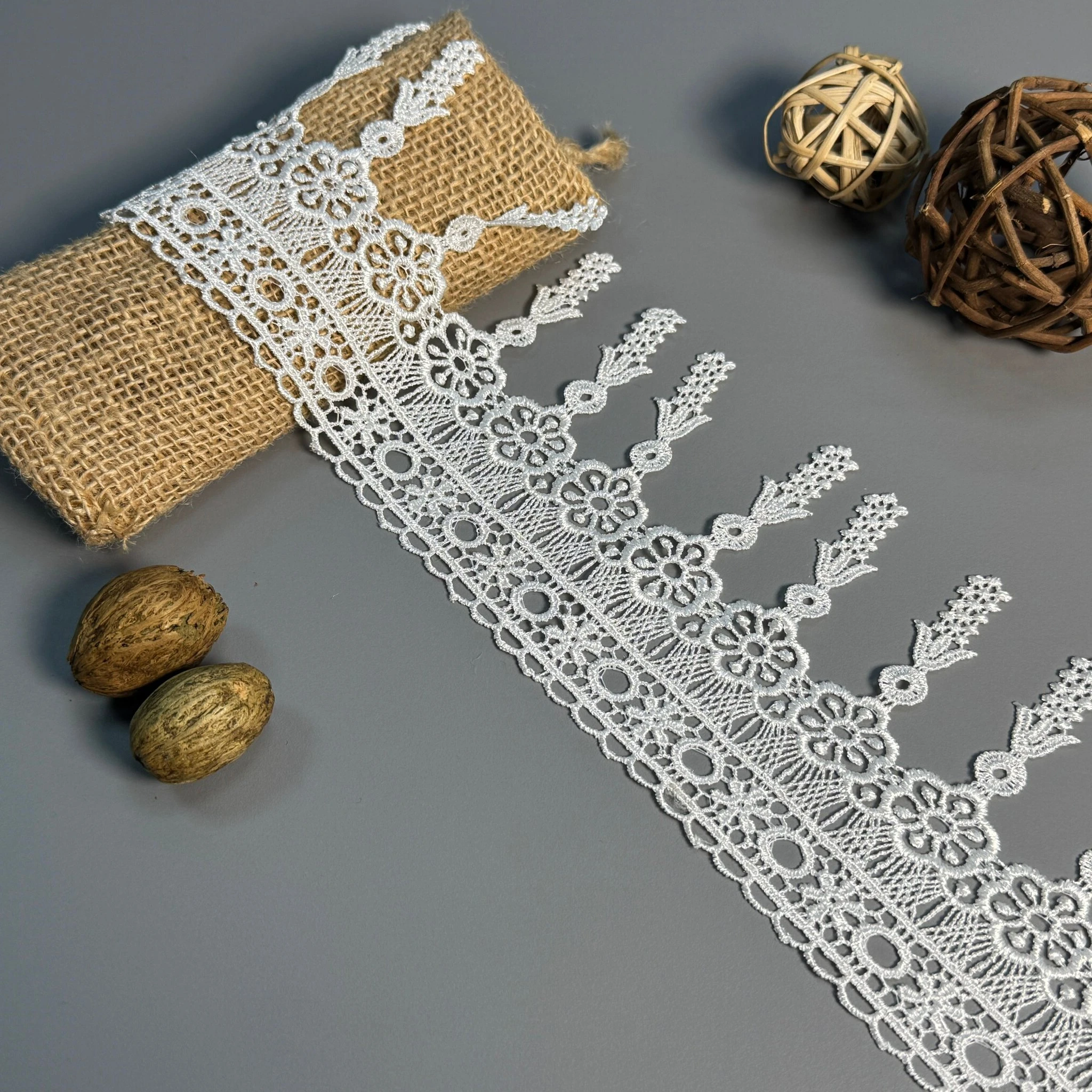 Мягкое, прочное и износостойкое кружево из полиэстера отлично подходит для отделки платьев, блузок, юбок, белья, аксессуаров и декора.