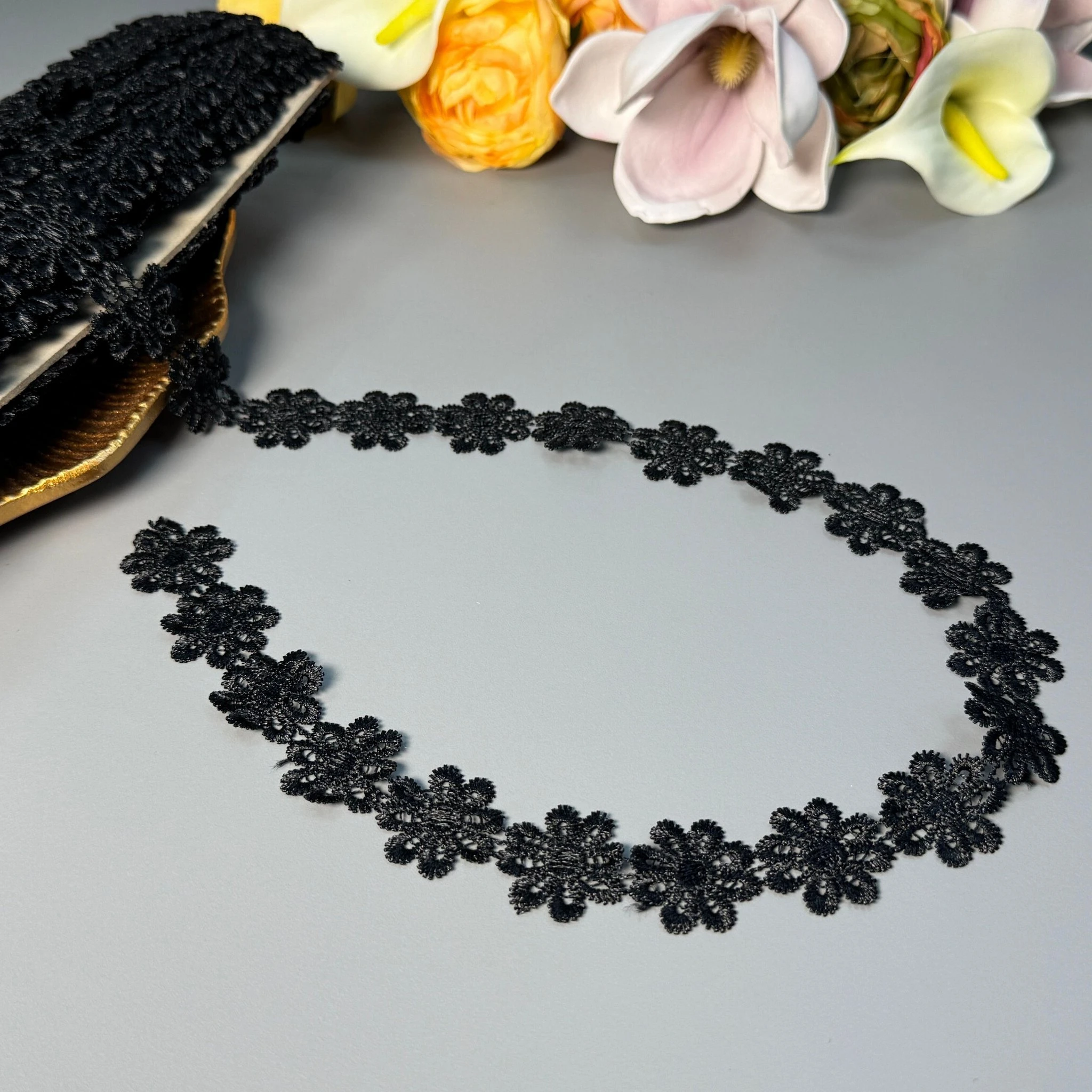 Мягкий, прочный и износостойкий гипюр из полиэстера отлично подходит для отделки платьев, блузок, юбок, белья, аксессуаров и декора.