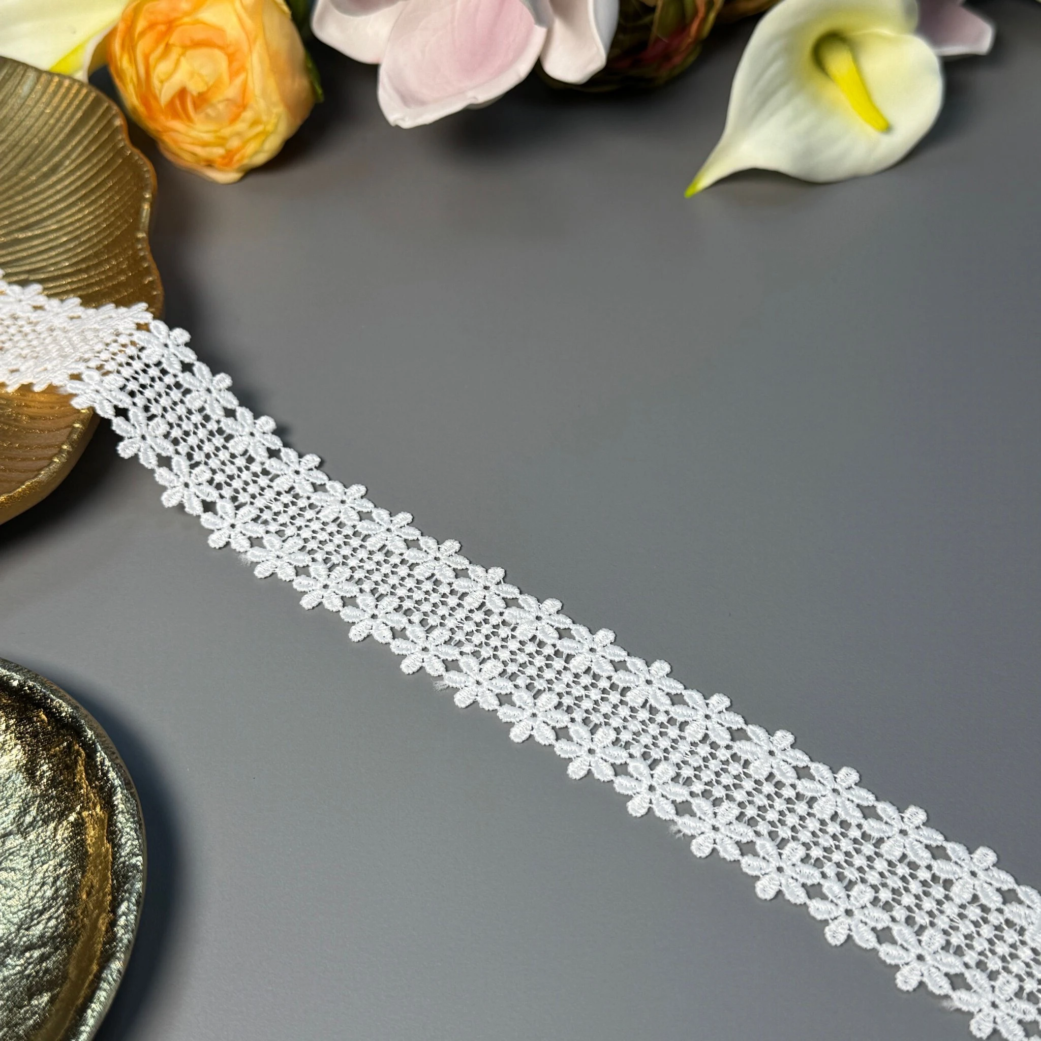 Мягкое, прочное и износостойкое кружево из полиэстера отлично подходит для отделки платьев, блузок, юбок, белья, аксессуаров и декора.