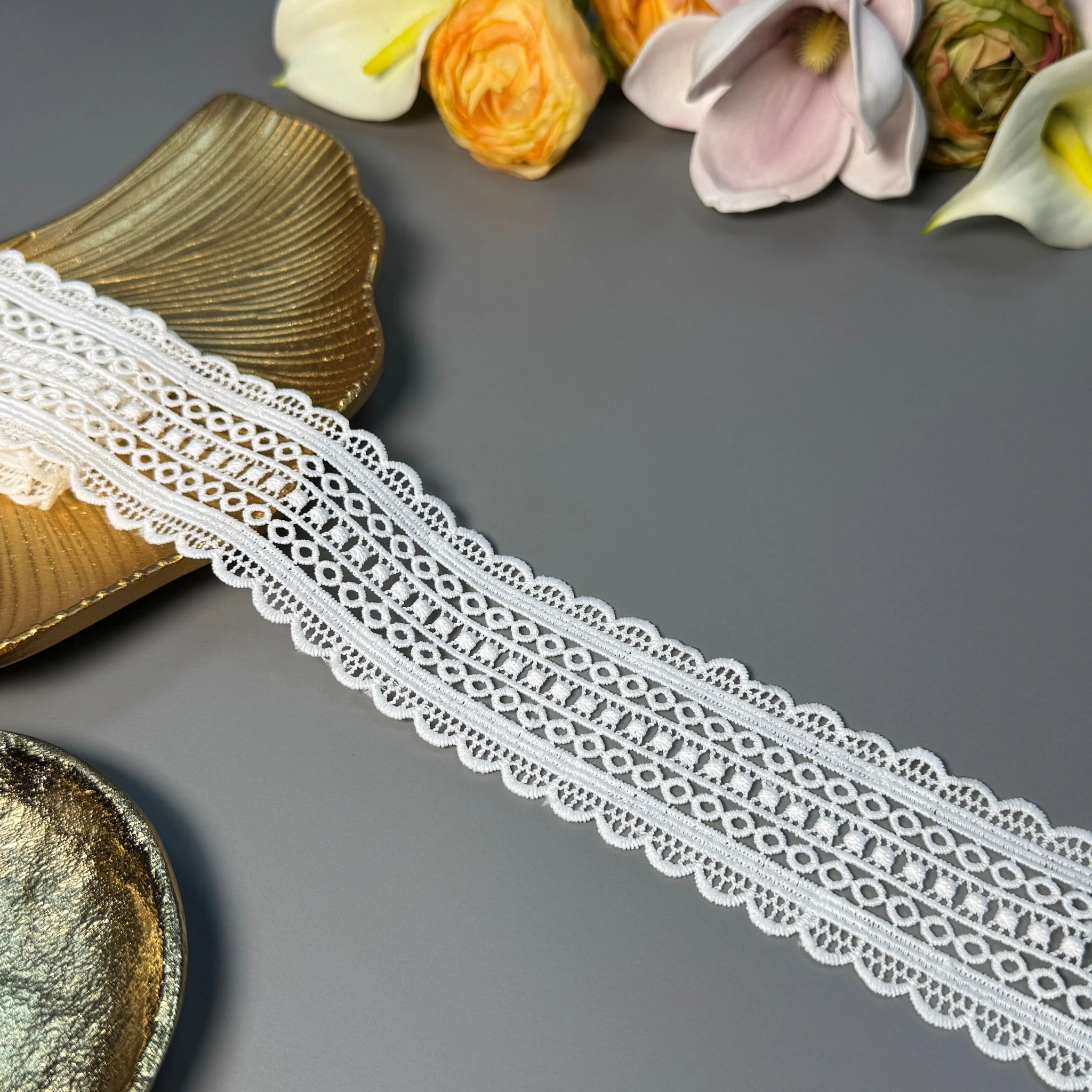Мягкое, прочное и износостойкое кружево из полиэстера прекрасно подходит для отделки платьев, блузок, юбок, белья, аксессуаров и декора.