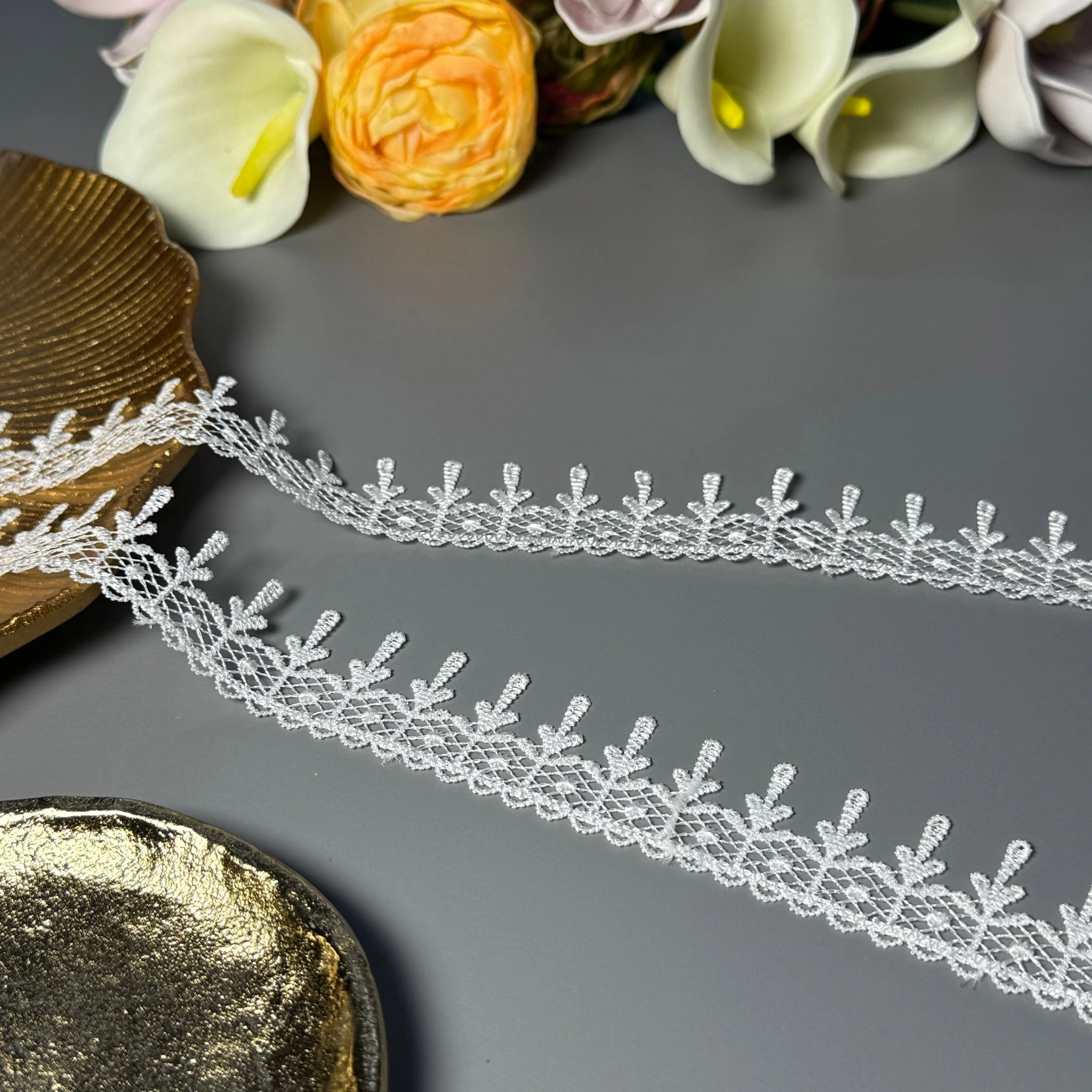 Мягкое, прочное и износостойкое кружево из полиэстера отлично подходит для отделки платьев, блузок, юбок, белья, аксессуаров и декора.