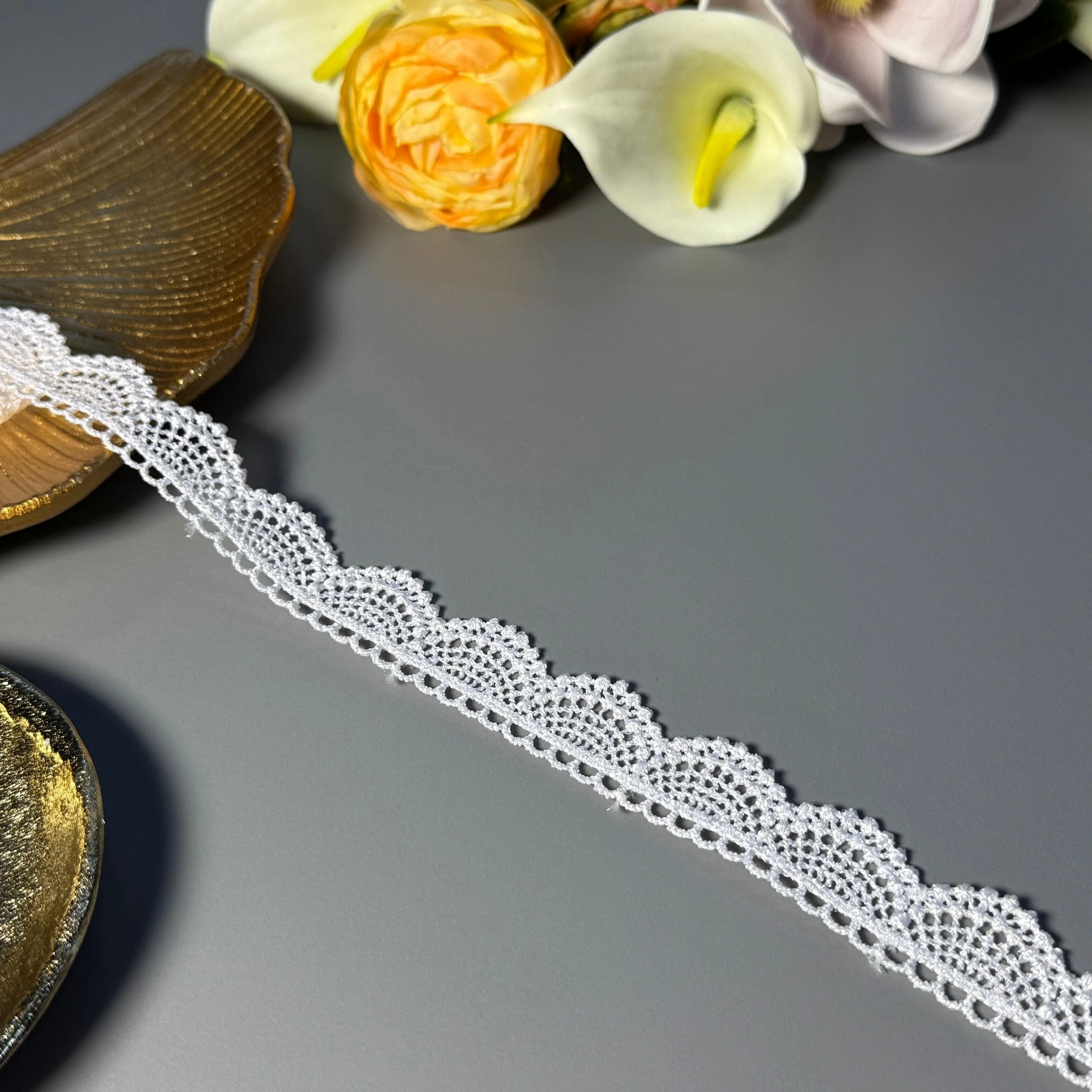 Мягкое, прочное и износостойкое кружево из полиэстера отлично подходит для отделки платьев, блузок, юбок, нижнего белья, аксессуаров и декора.