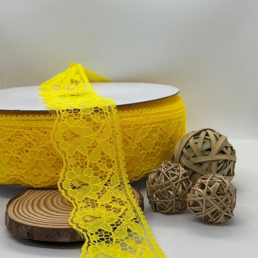 Цветное полиэстеровое кружево — легкое и прочное декоративное кружево яркой цветовой гаммы. Оно имеет насыщенные оттенки и четкий узор, хорошо держит форму и не деформируется во время шитья.
