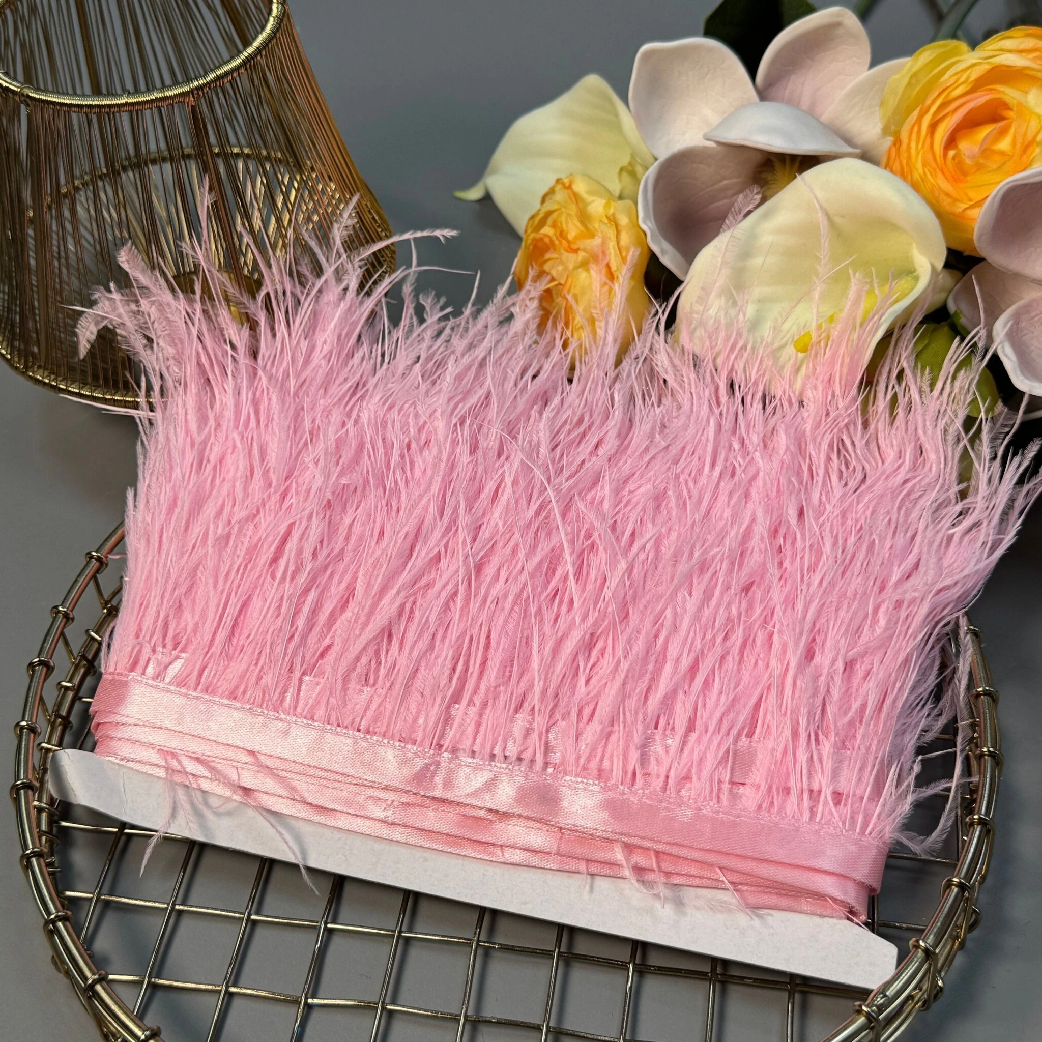 Натуральное перо на тесьме 7-10 см (1 метр), 24 рожевий