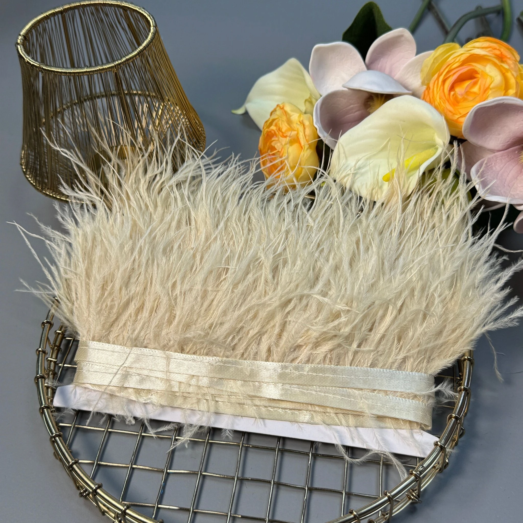 Натуральное перо на тесьме 7-10 см (1 метр), 4 світлий бежевий