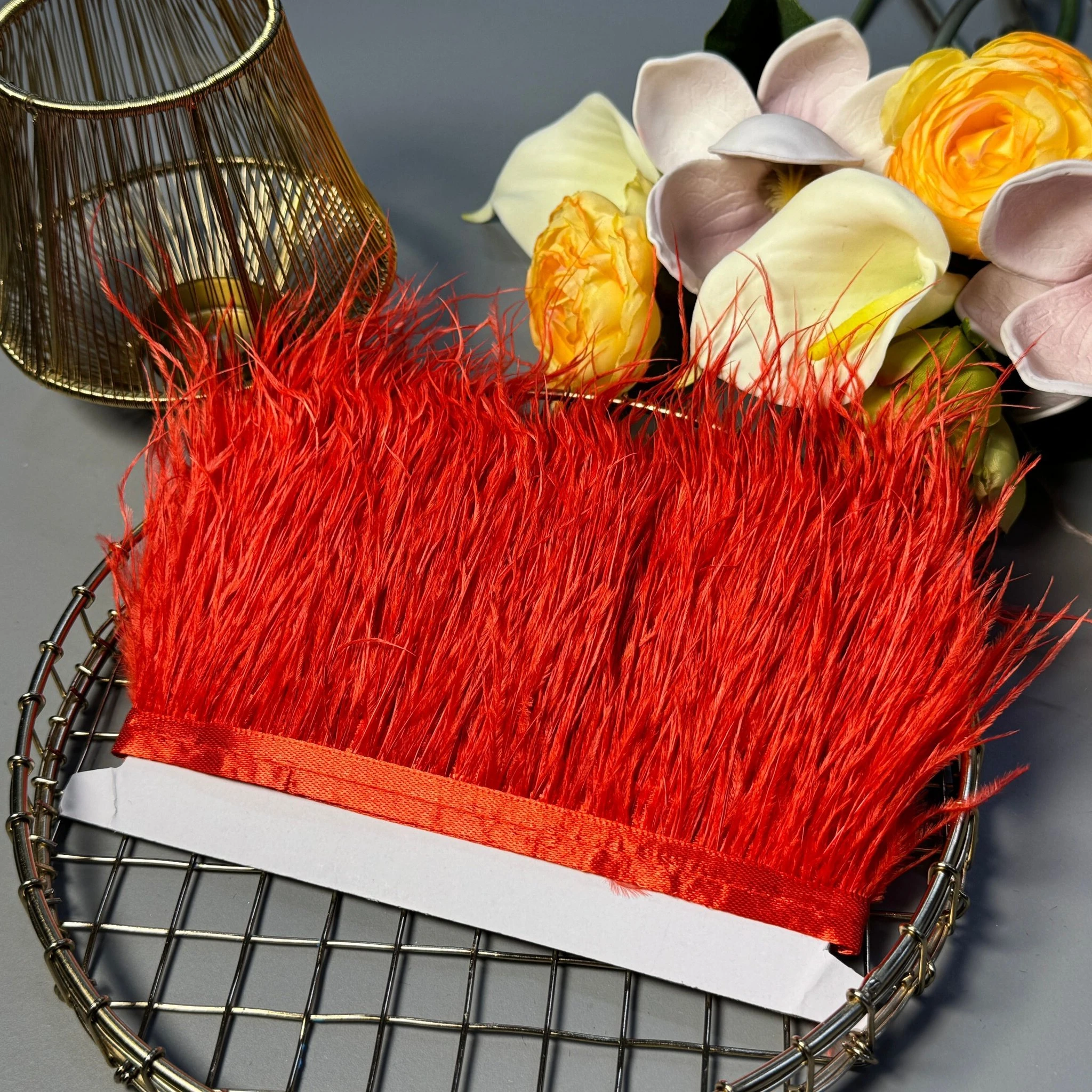 Натуральное перо на тесьме 7-10 см (1 метр), світлий червоний