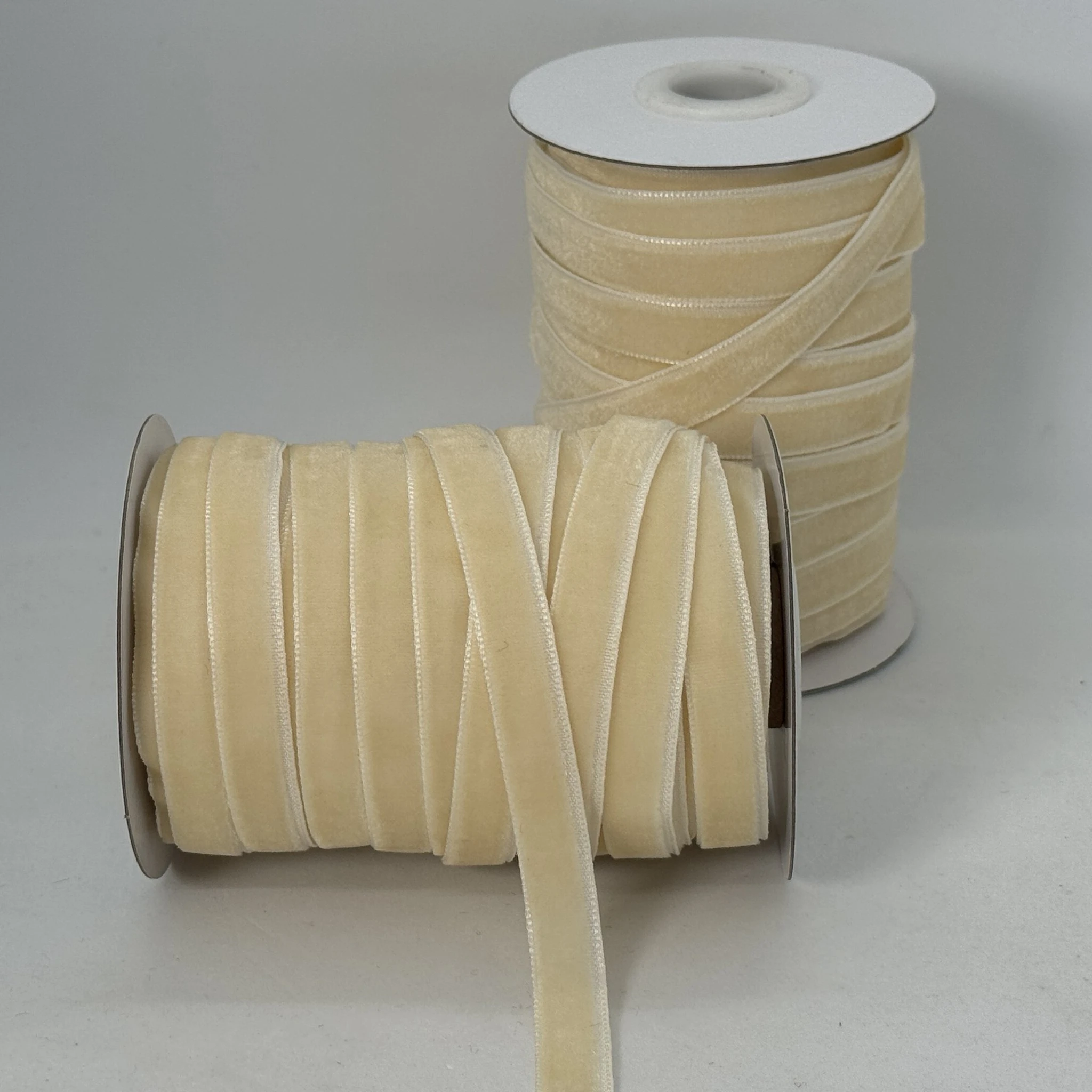 Бархатная лента 1 см (25 ярдов/22,75 м.), 04 темний молочний