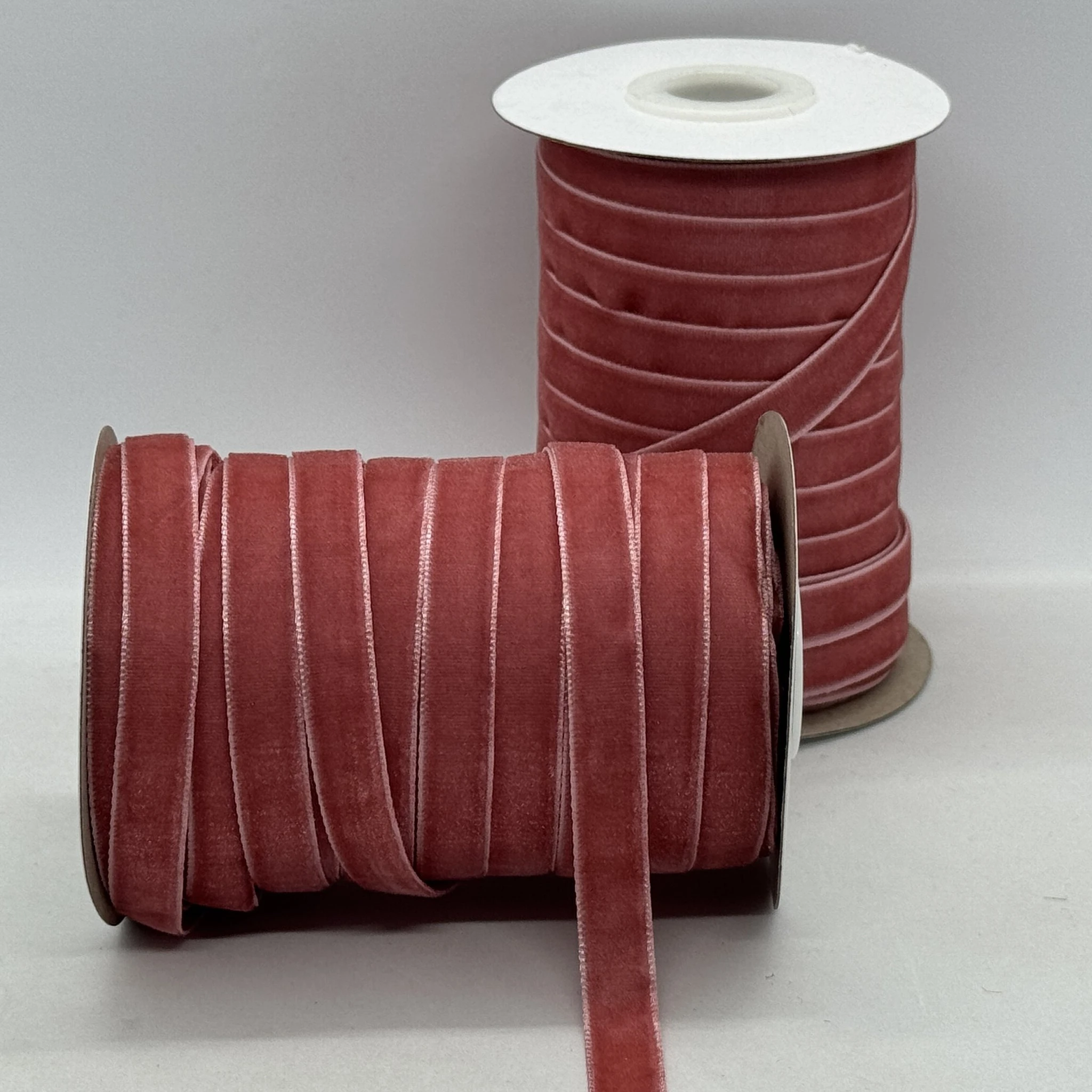 Бархатная лента 1 см (25 ярдов/22,75 м.), 10 рожева пудра