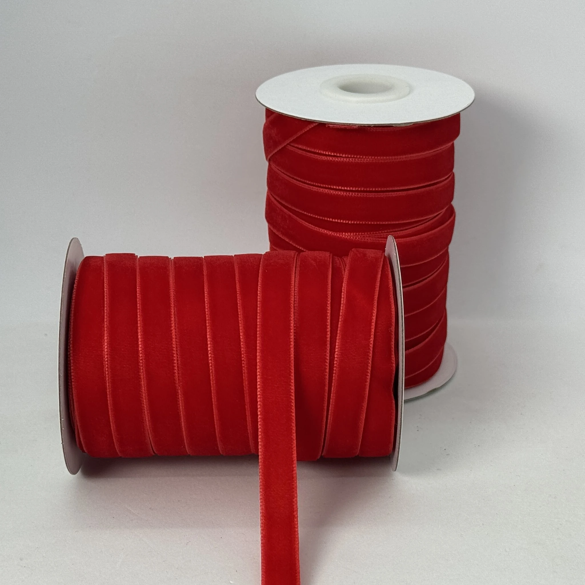 Бархатная лента 1 см (25 ярдов/22,75 м.), 40 світлий червоний
