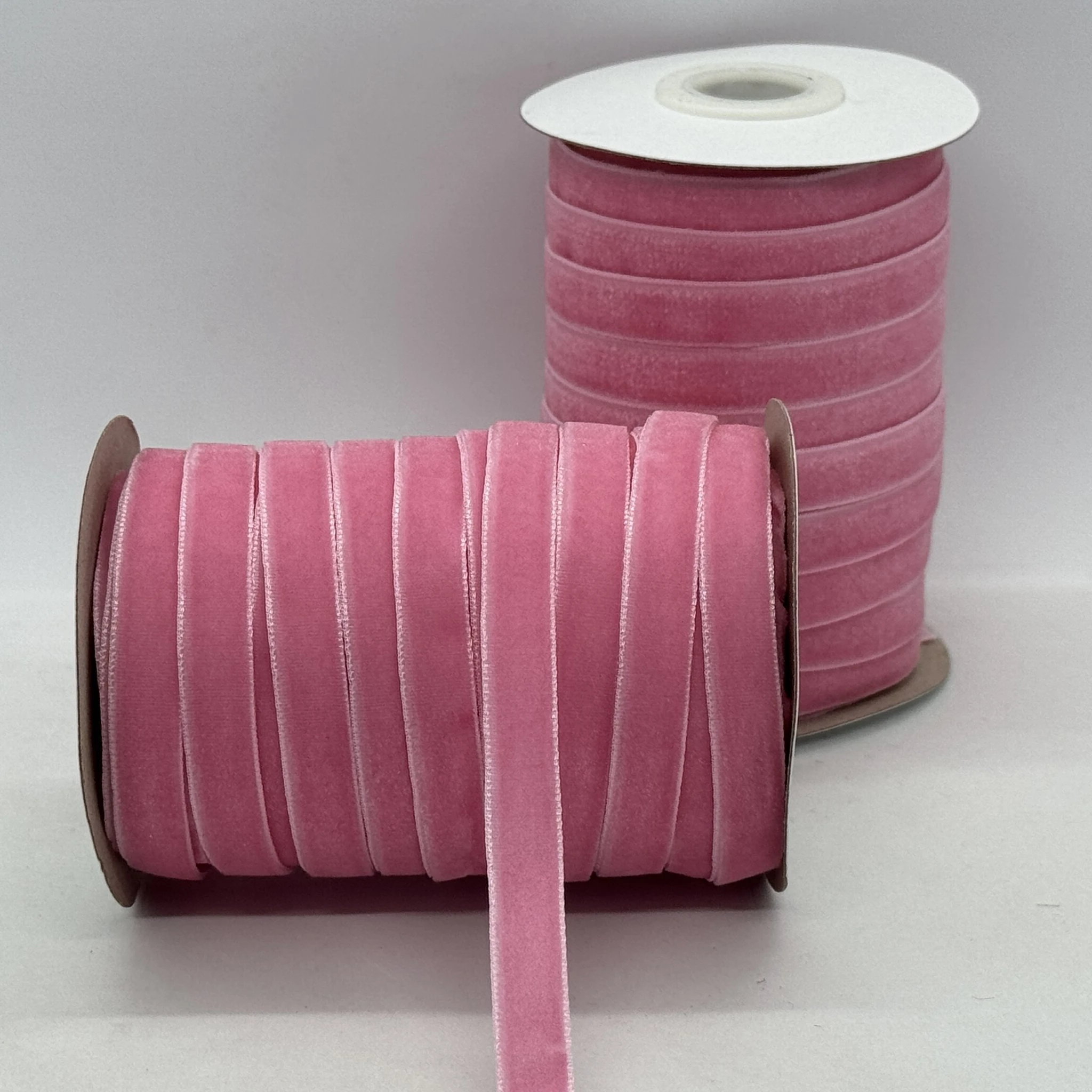 Бархатная лента 1 см (25 ярдов/22,75 м.), 75 рожевий