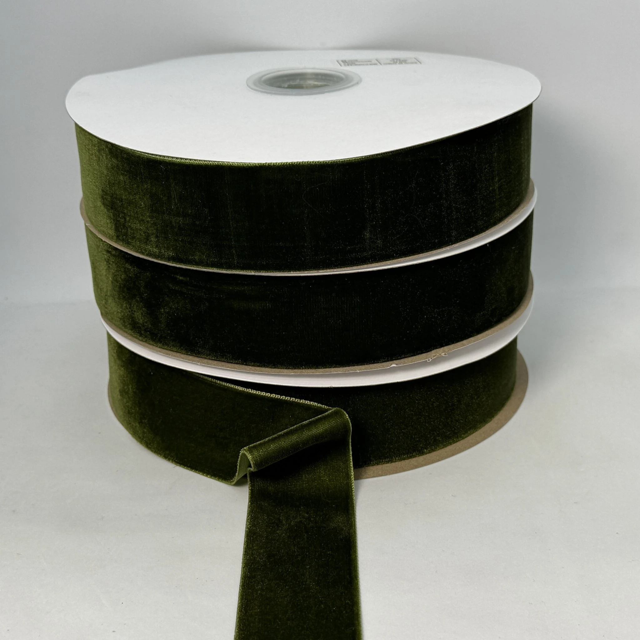 Бархатная лента 3.8 см (25 ярдов/22,75 м.), 36 оливковий