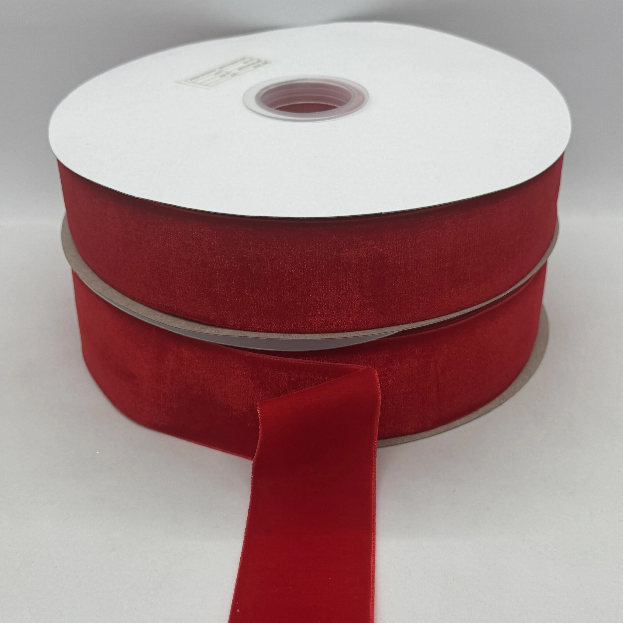 Бархатная лента 3.8 см (25 ярдов/22,75 м.), 40 світлий червоний