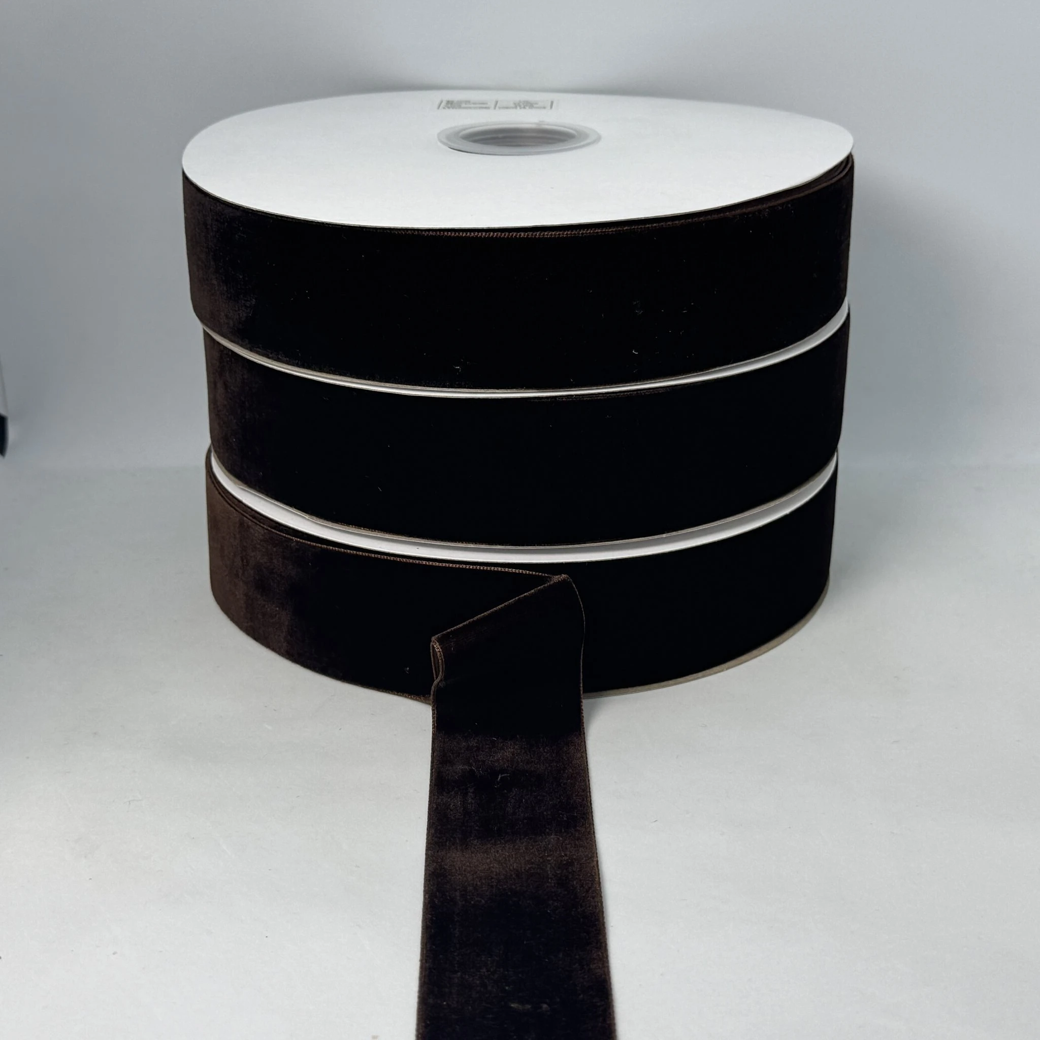 Бархатная лента 3.8 см (25 ярдов/22,75 м.), 70 темний коричневий