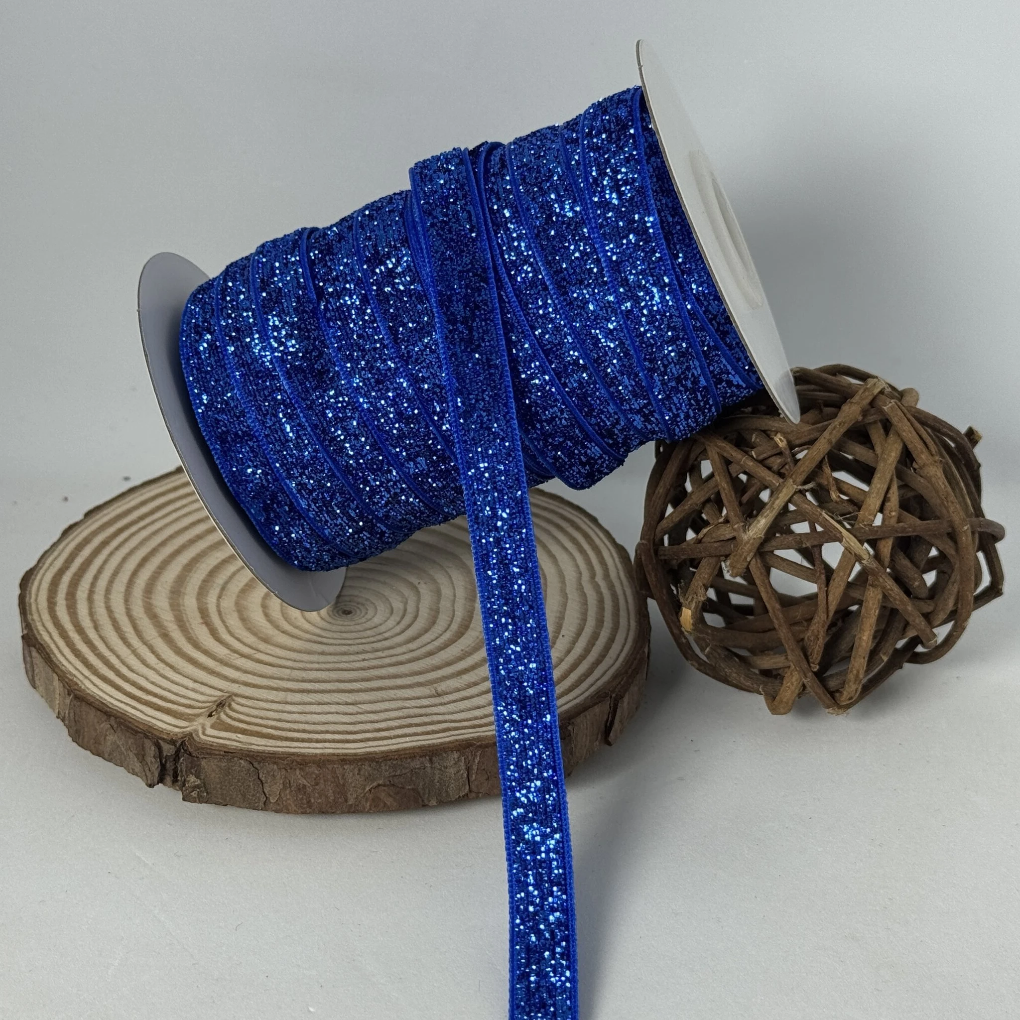 Бархатистая лента люрекс 1 см (25 ярдов/22,75 м.), 01 електрик