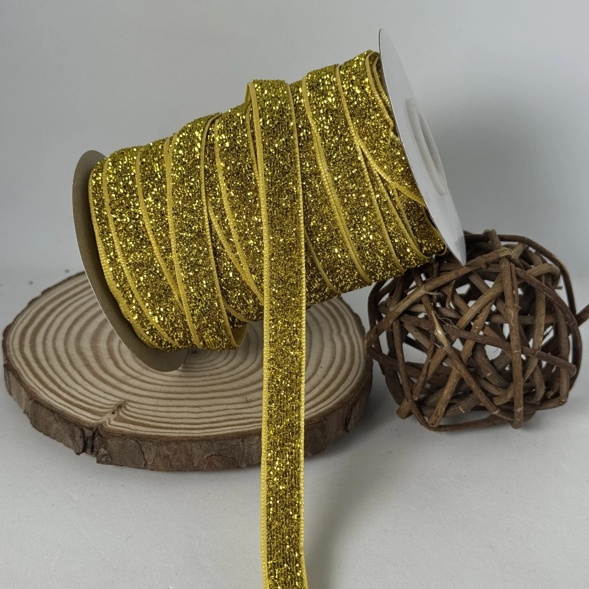 Бархатистая лента люрекс 1 см (25 ярдов/22,75 м.), 02 золото