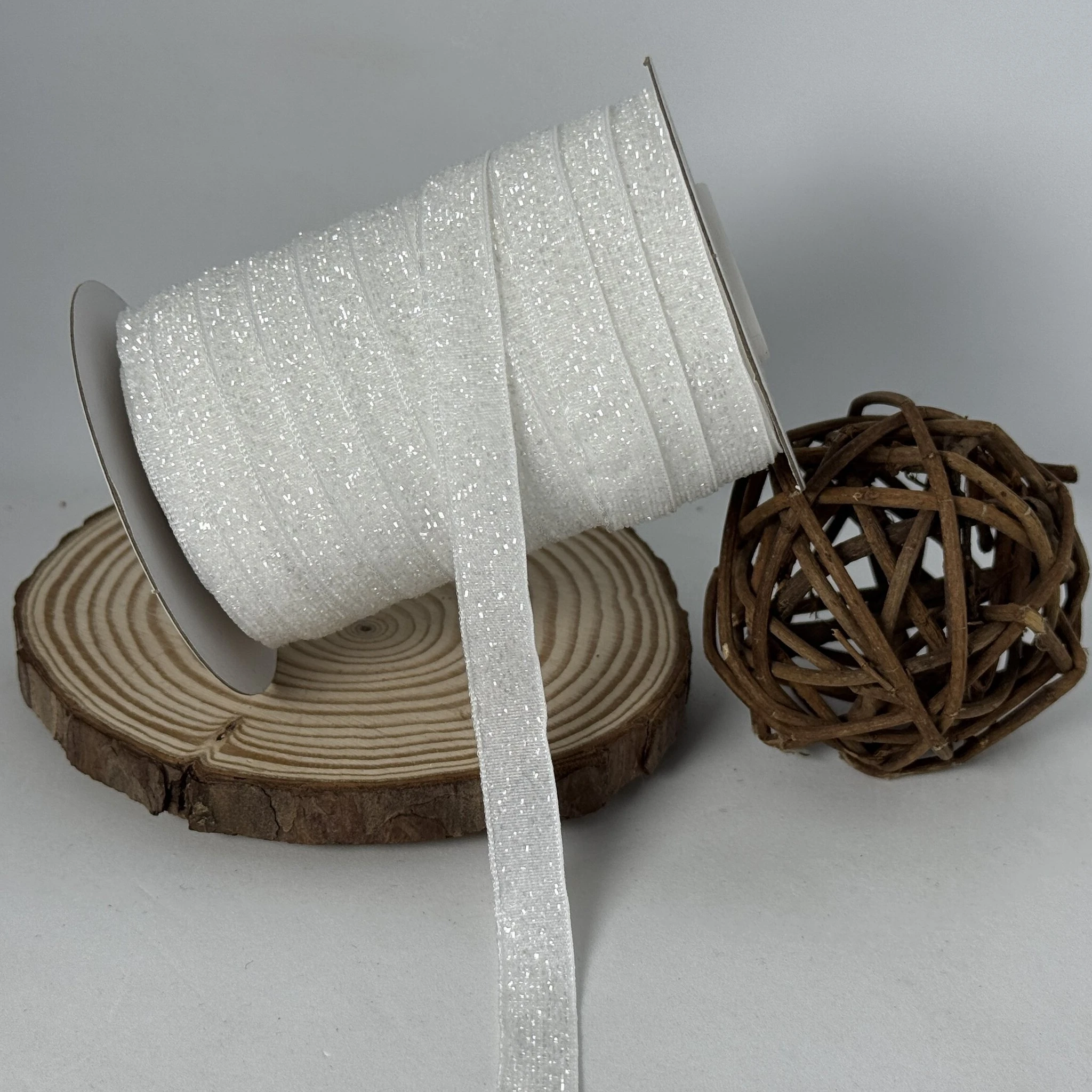 Бархатистая лента люрекс 1 см (25 ярдов/22,75 м.), 07 білий