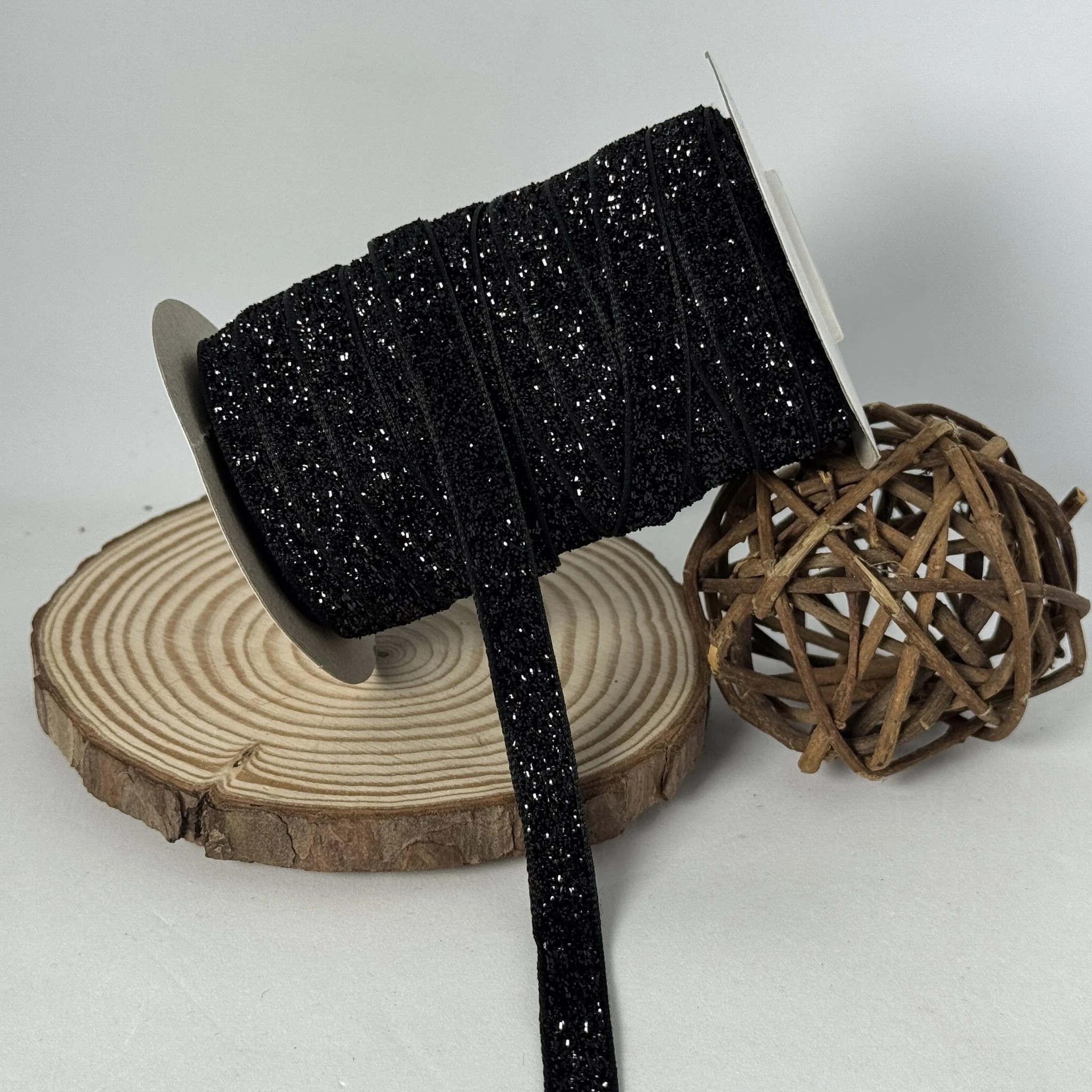 Бархатистая лента люрекс 1 см (25 ярдов/22,75 м.), 08 чорний