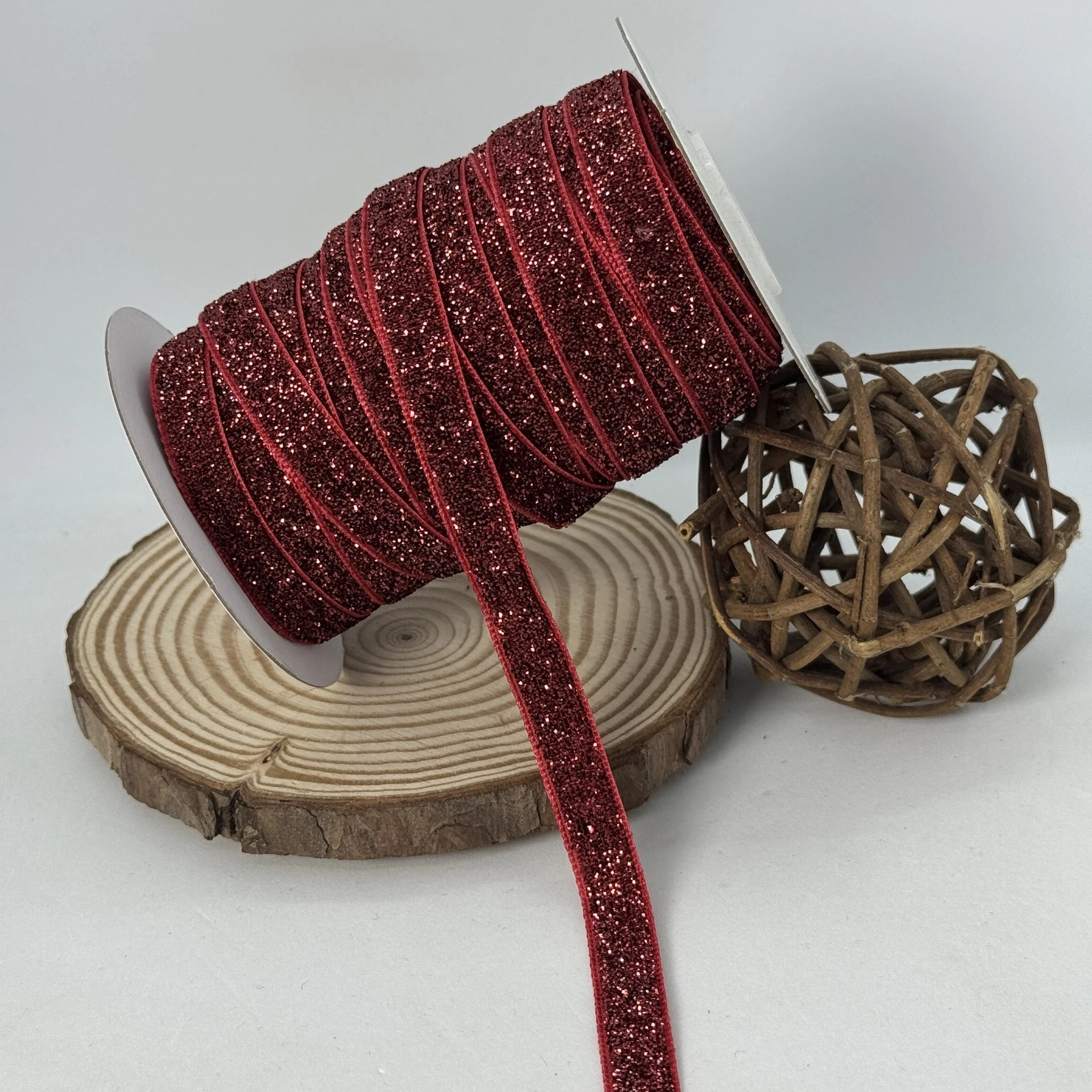 Бархатистая лента люрекс 1 см (25 ярдов/22,75 м.), 10 бордовий