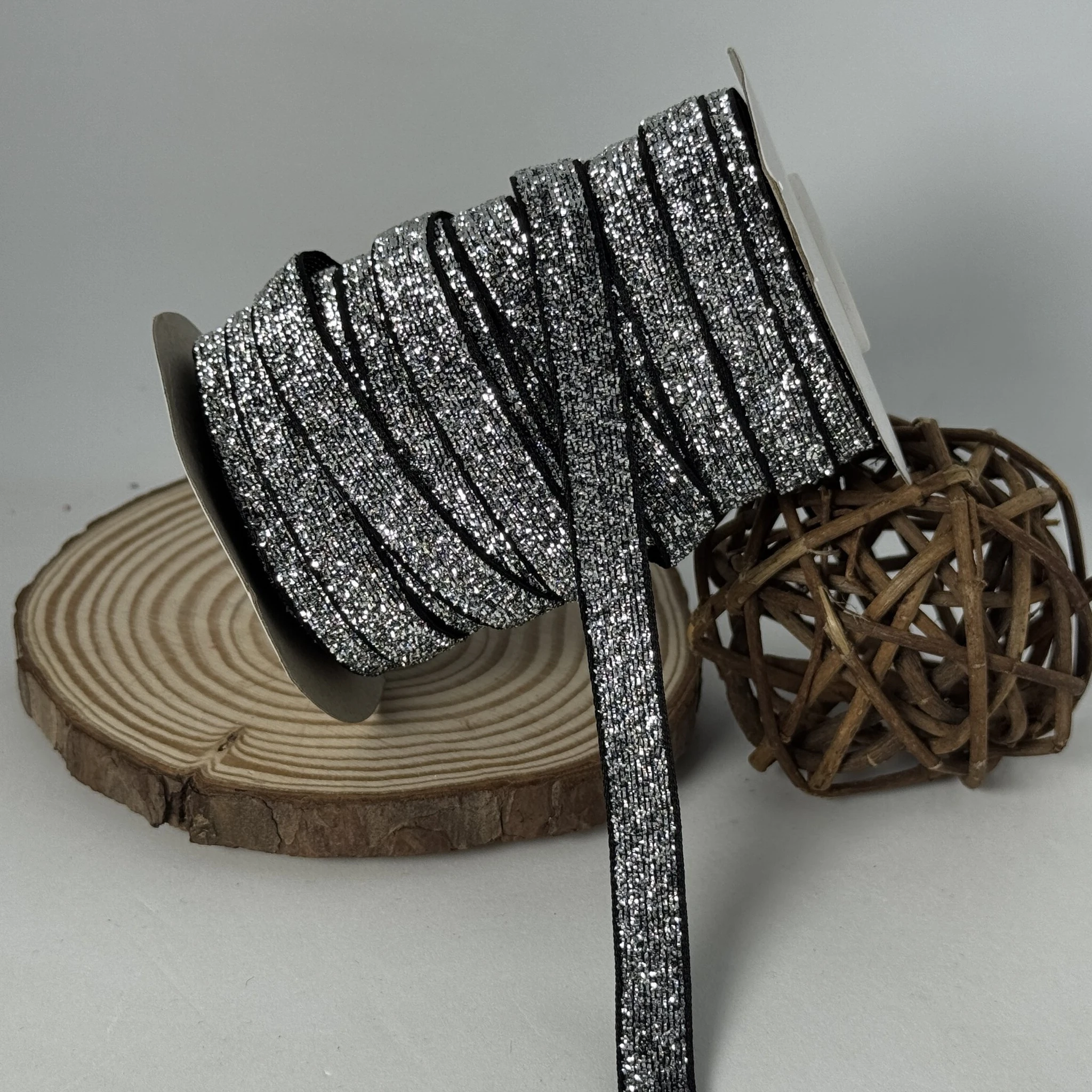 Бархатистая лента люрекс 1 см (25 ярдов/22,75 м.), 17 срібло + чорний