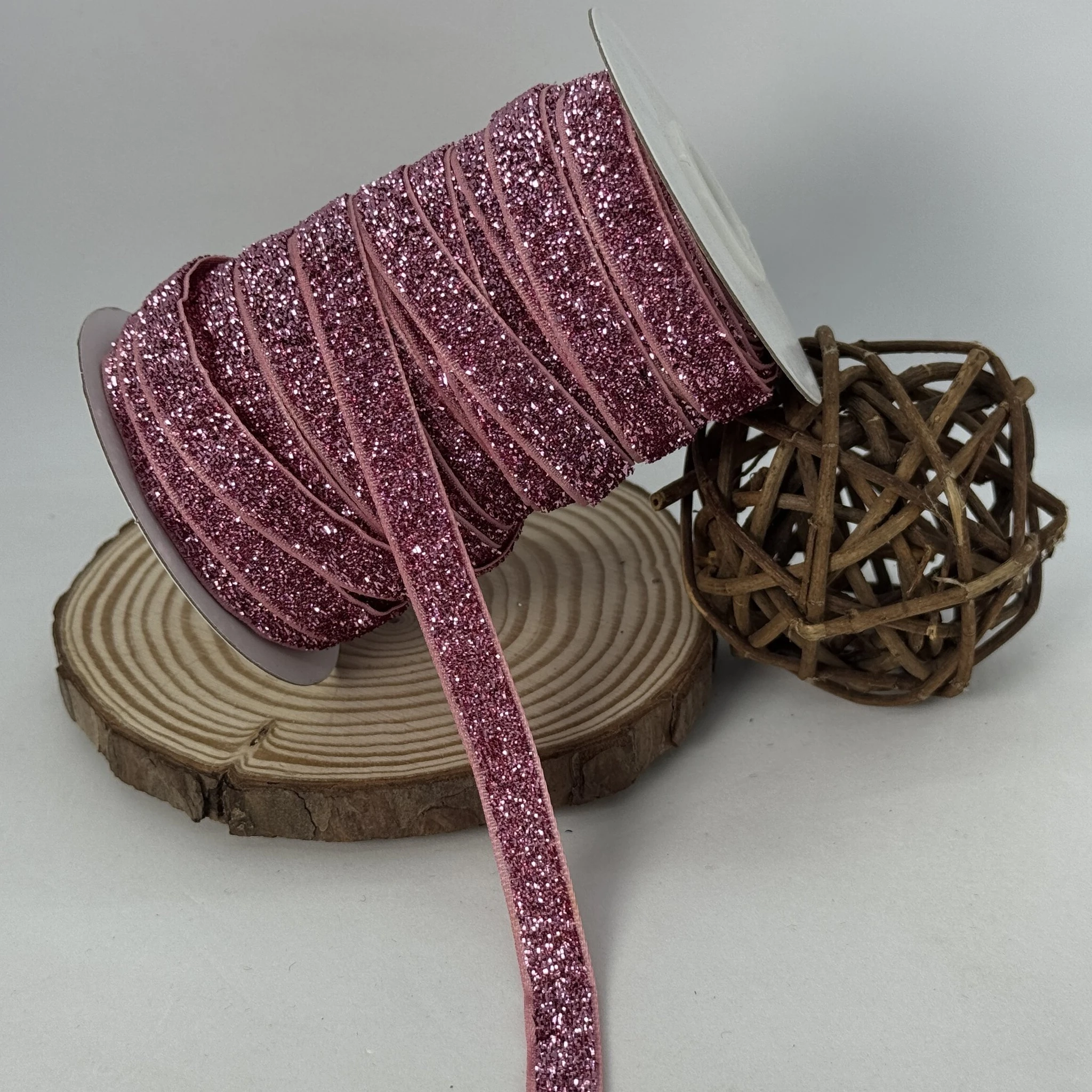 Бархатистая лента люрекс 1 см (25 ярдов/22,75 м.), 18 рожевий