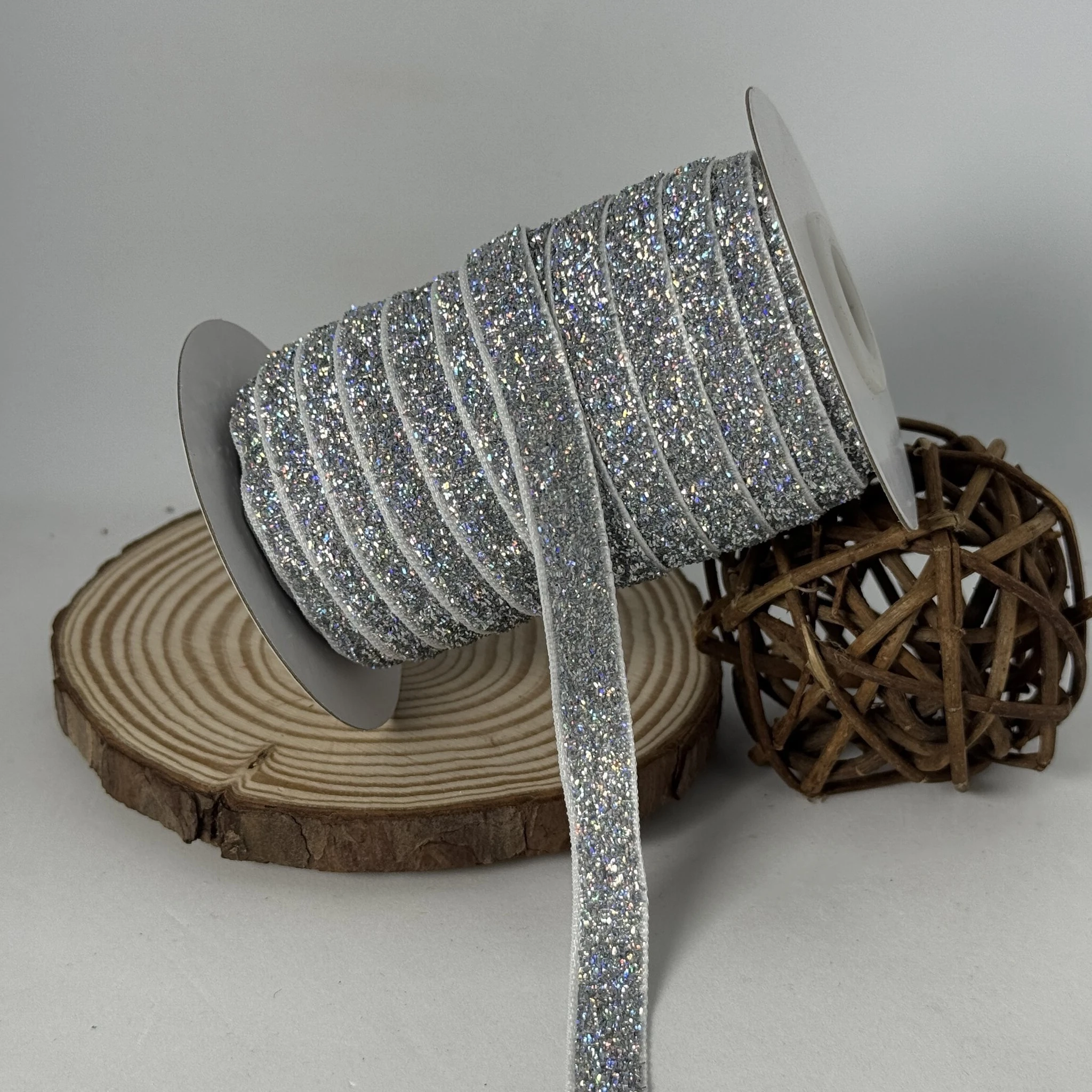 Бархатистая лента люрекс 1 см (25 ярдов/22,75 м.), 30 срібло