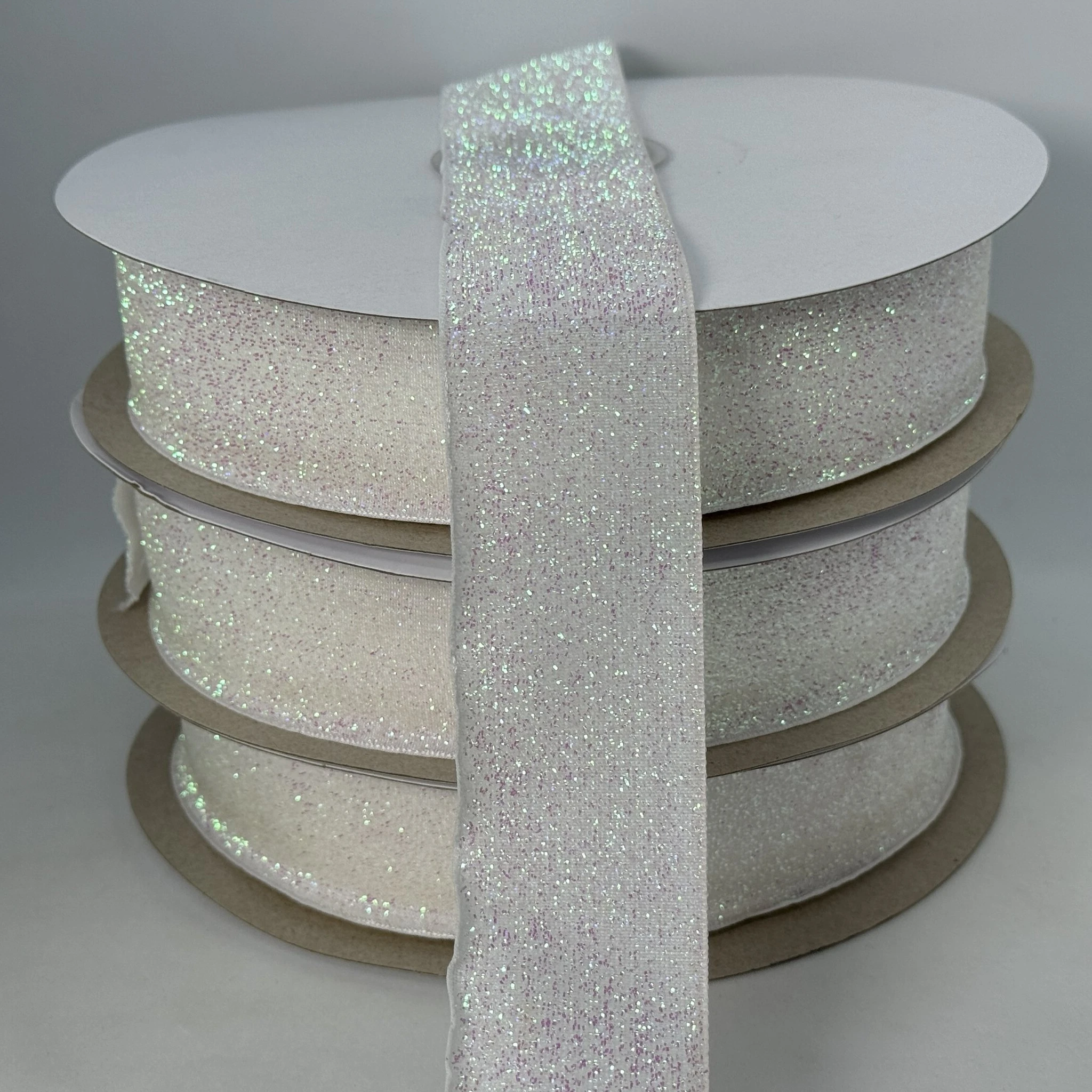 Бархатная лента люрекс 3.8 см (25 ярдов/22,75 м.), 28 білий АВ