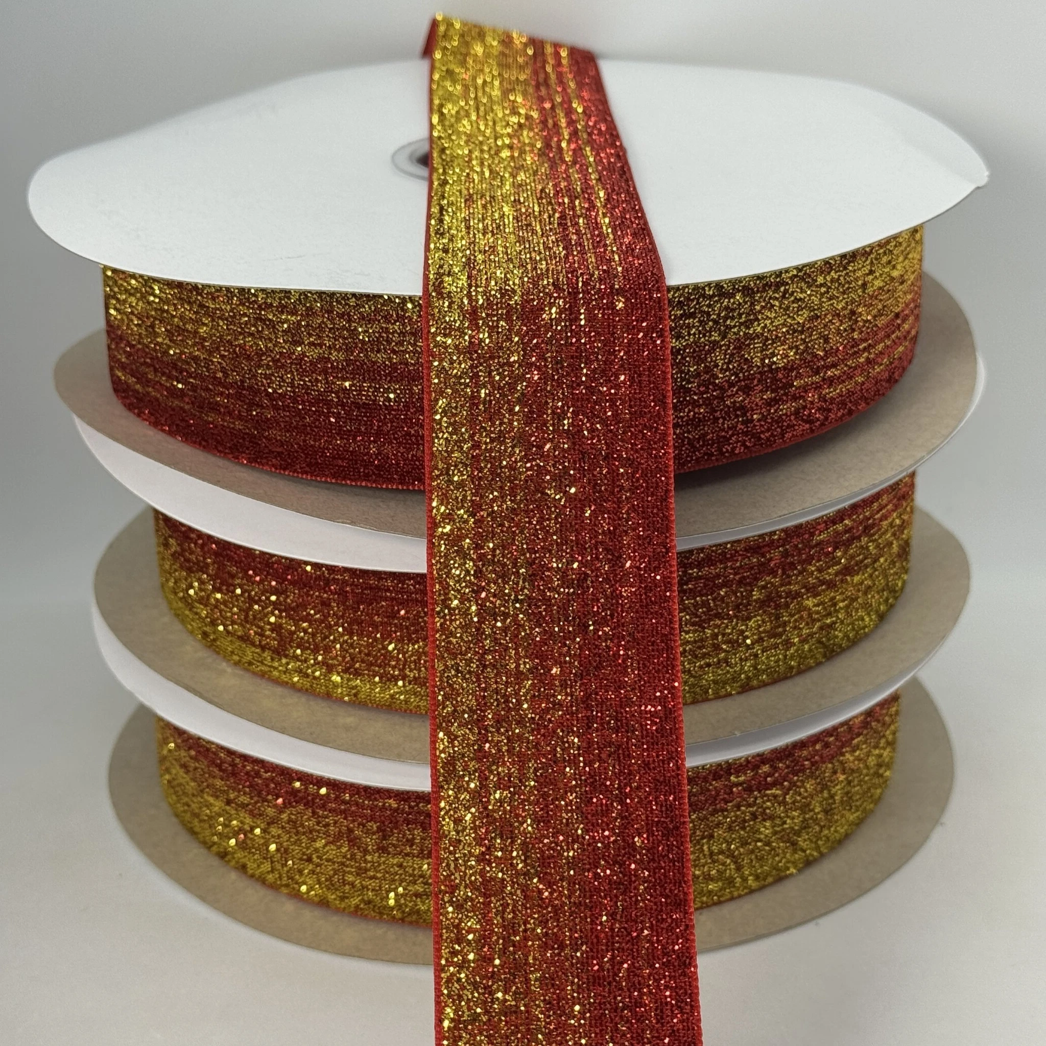 Бархатная лента люрекс 3.8 см (25 ярдов/22,75 м.), 32 червоний + золото