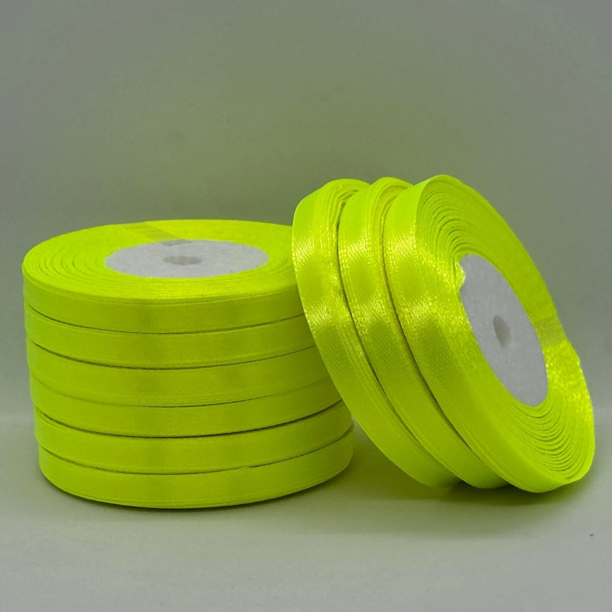Атласная лента 0.6 см (33 м.), 58 неон жовтий