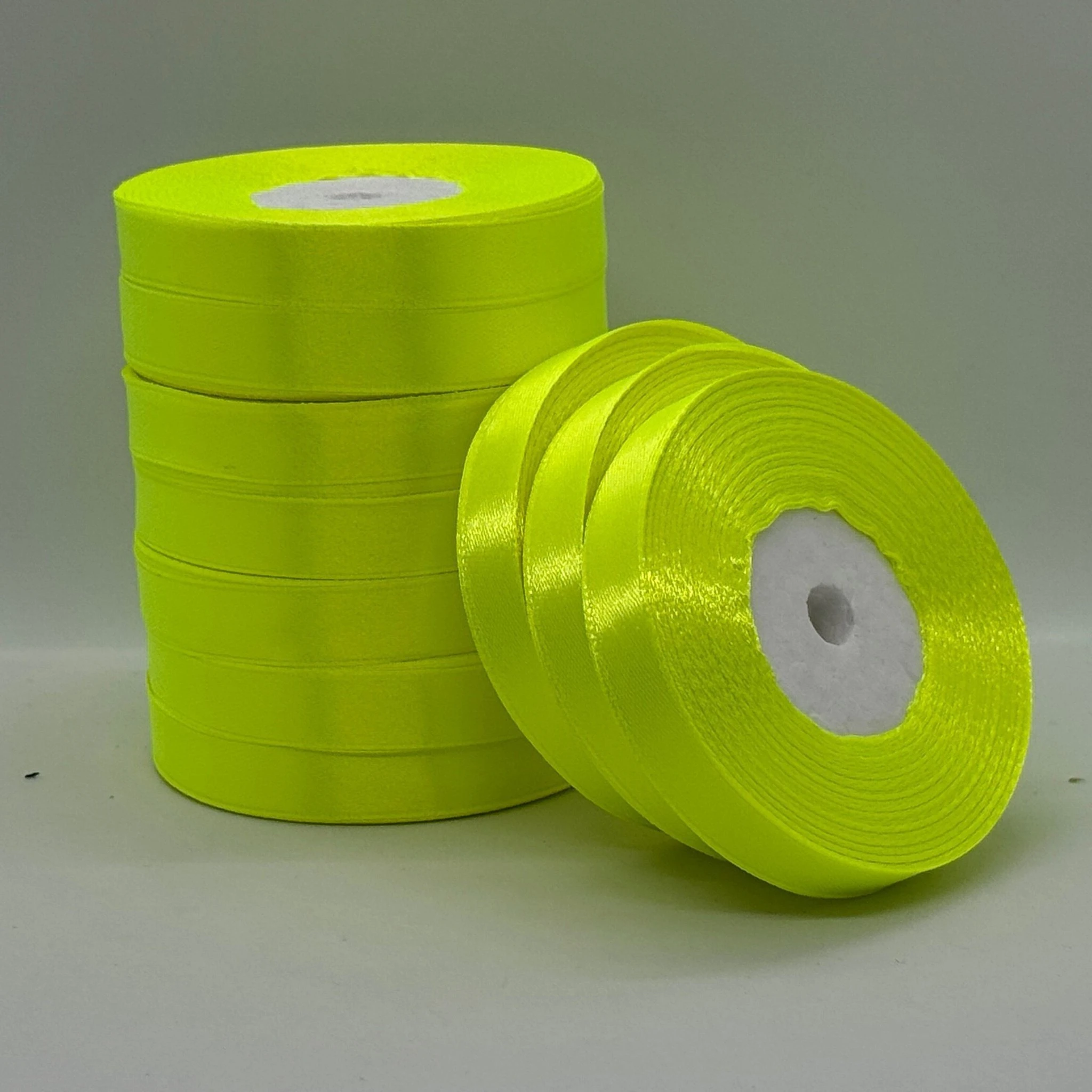 Атласная лента 1.2 см (33 м.), 58 неон жовтий