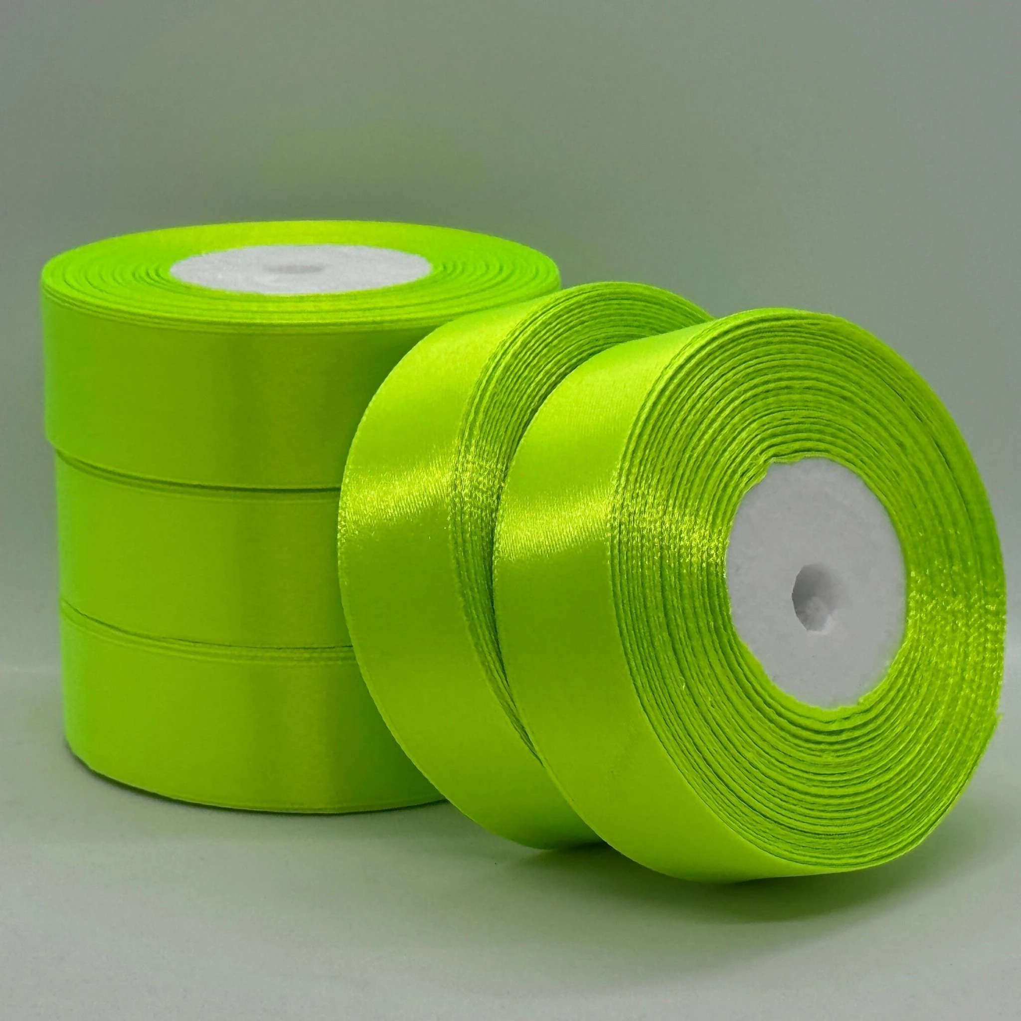 Атласная лента 2,5 см (33 м.), 57 неон салатовий