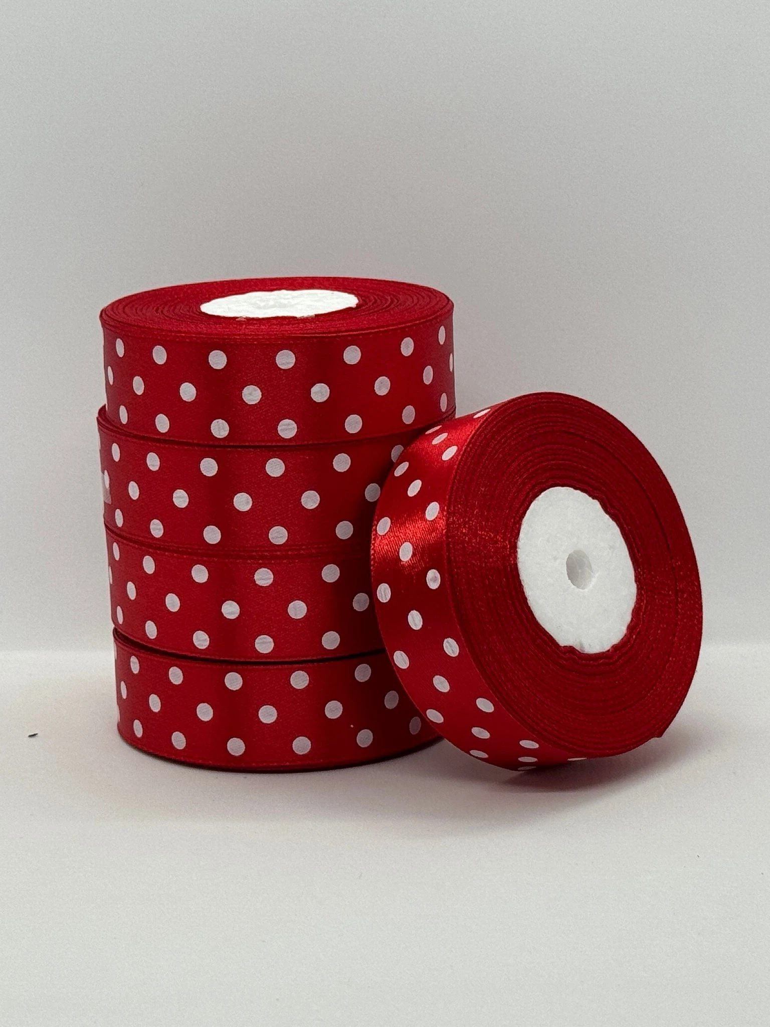 Лента атласная в горошек 2.5 см (33 м) — стильный и яркий элемент декора!
