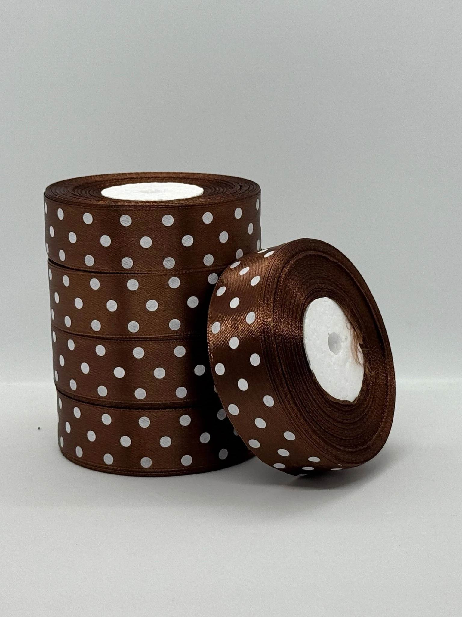 Атласная лента в горох 2.5 см (33 м.), 32 коричневий + білий