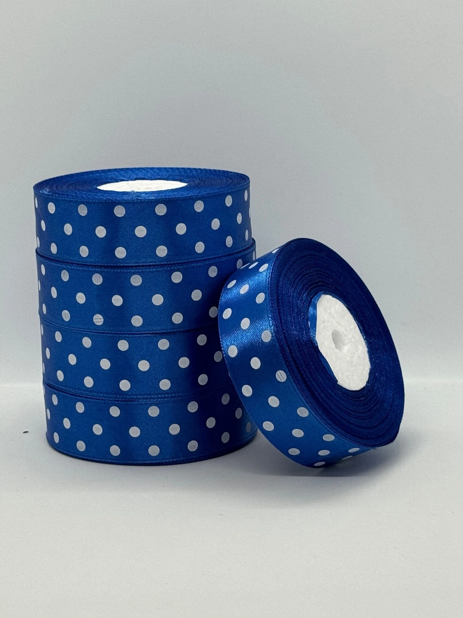 Атласная лента в горох 2.5 см (33 м.), 40 електрик + білий