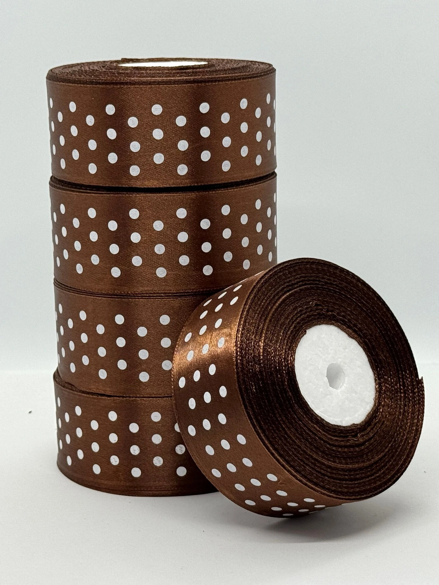 Атласная лента в горошек 4 см (33 м.), 32 коричневий + білий