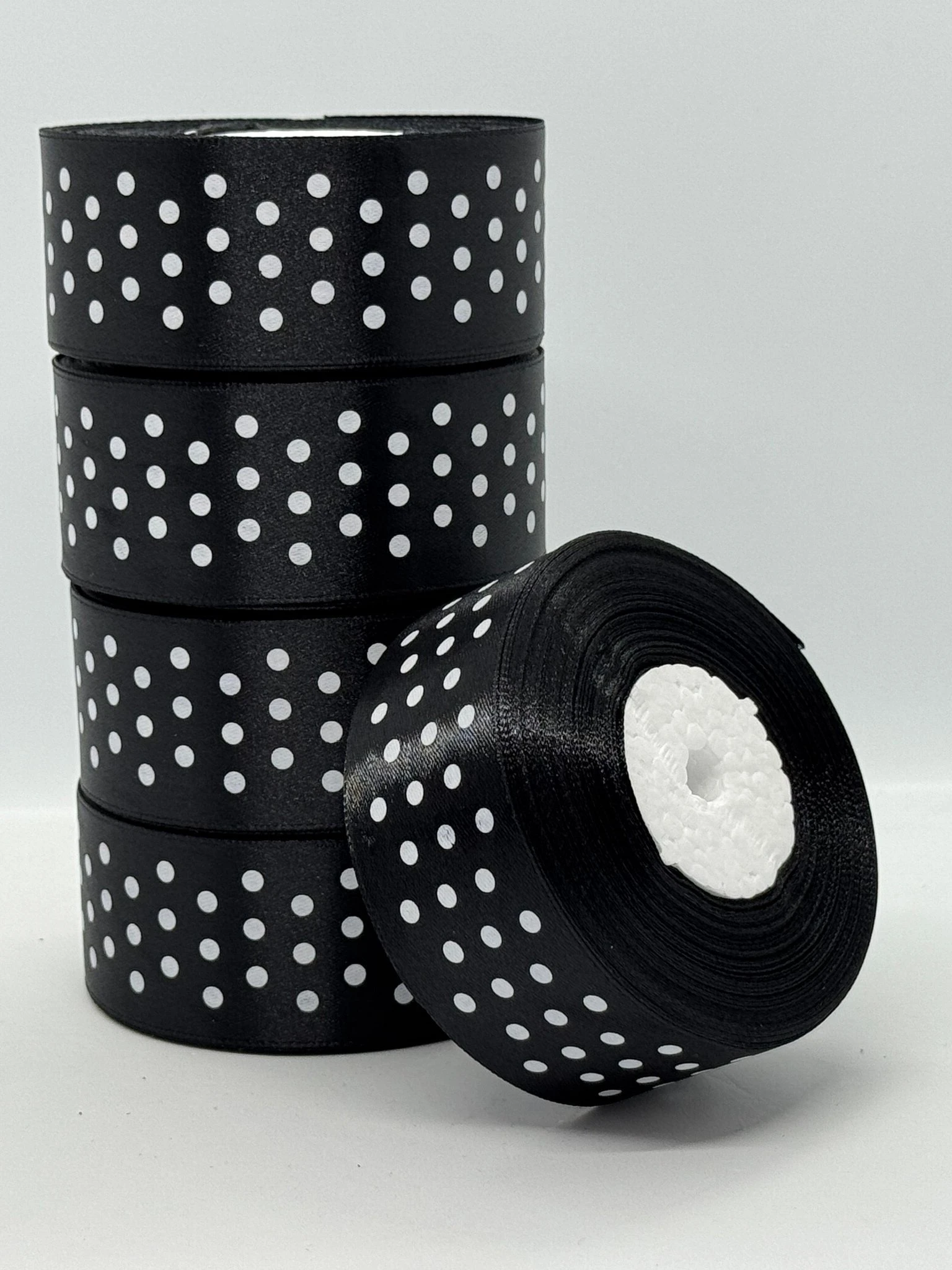 Атласная лента в горошек 4 см (33 м.), 39 чорний + білий