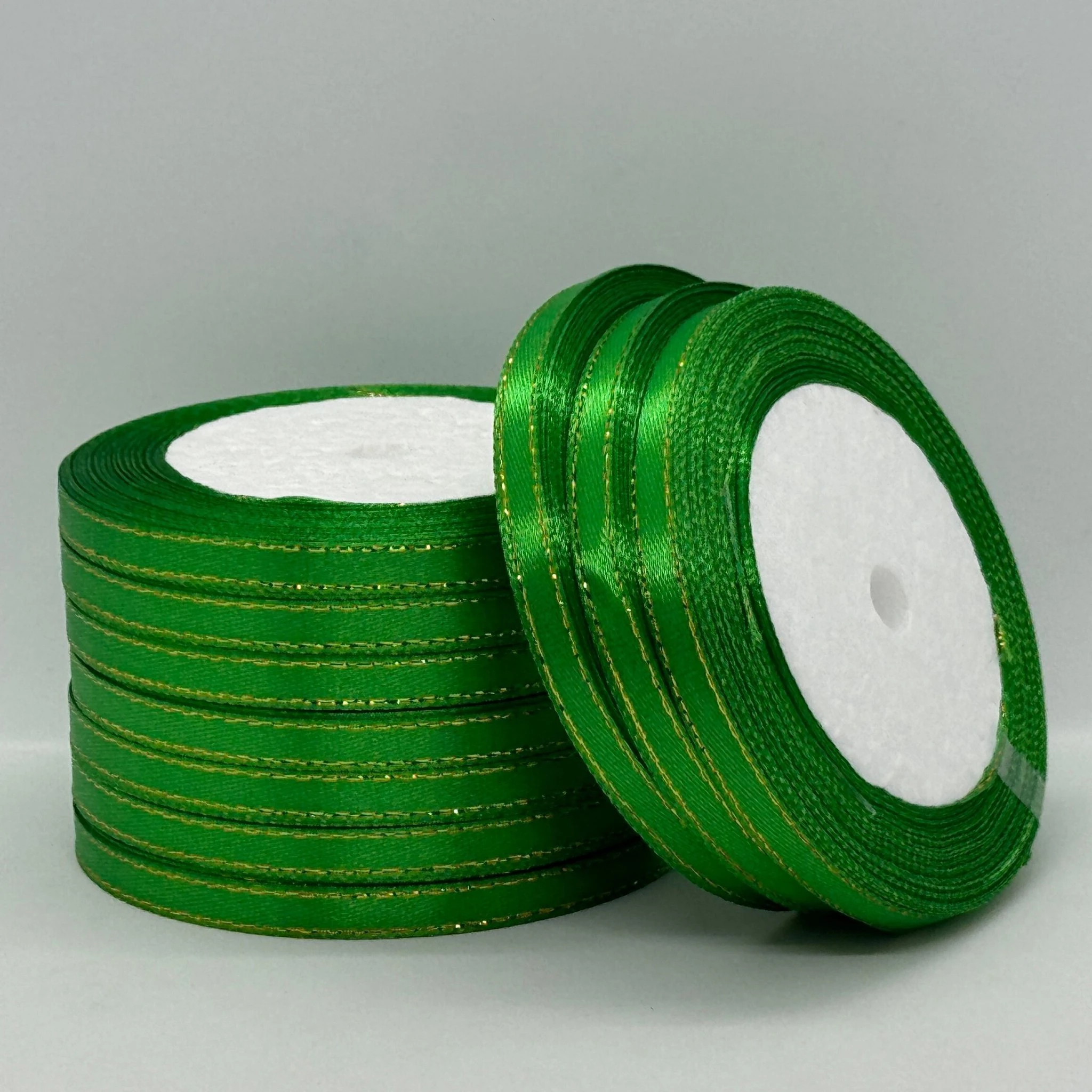 Атласная лента с люрексом 0,6 см+золото (22.75 м), 19 зелений