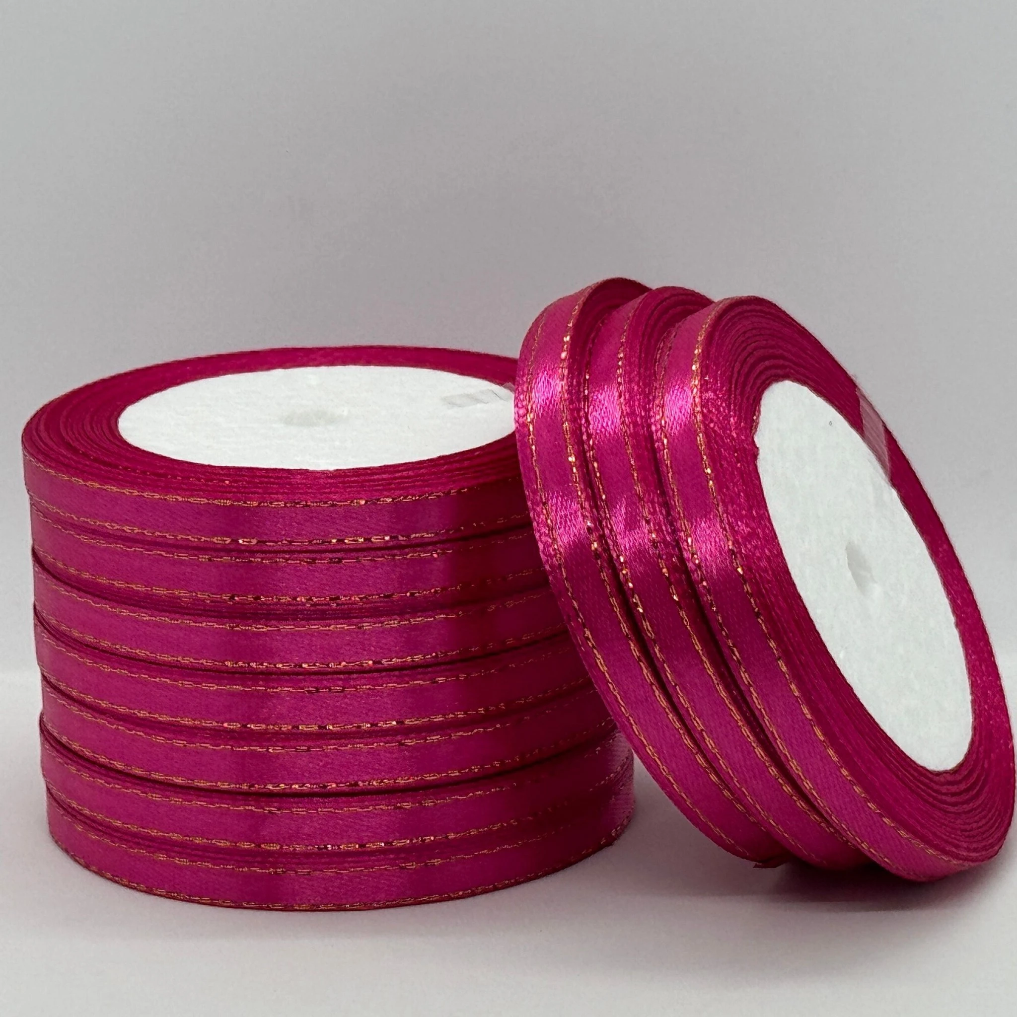 Атласная лента с люрексом 0,6 см+золото (22.75 м), 27 малиновий