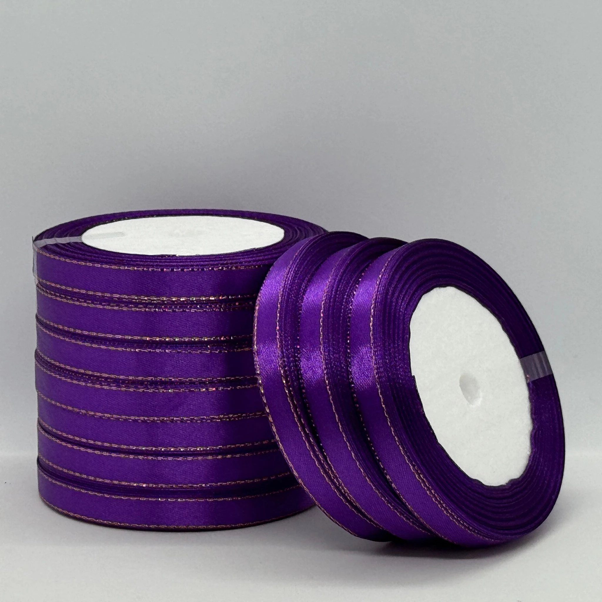 Атласная лента с люрекс 1 см+золото (22.75 м), 35 фіолетовий