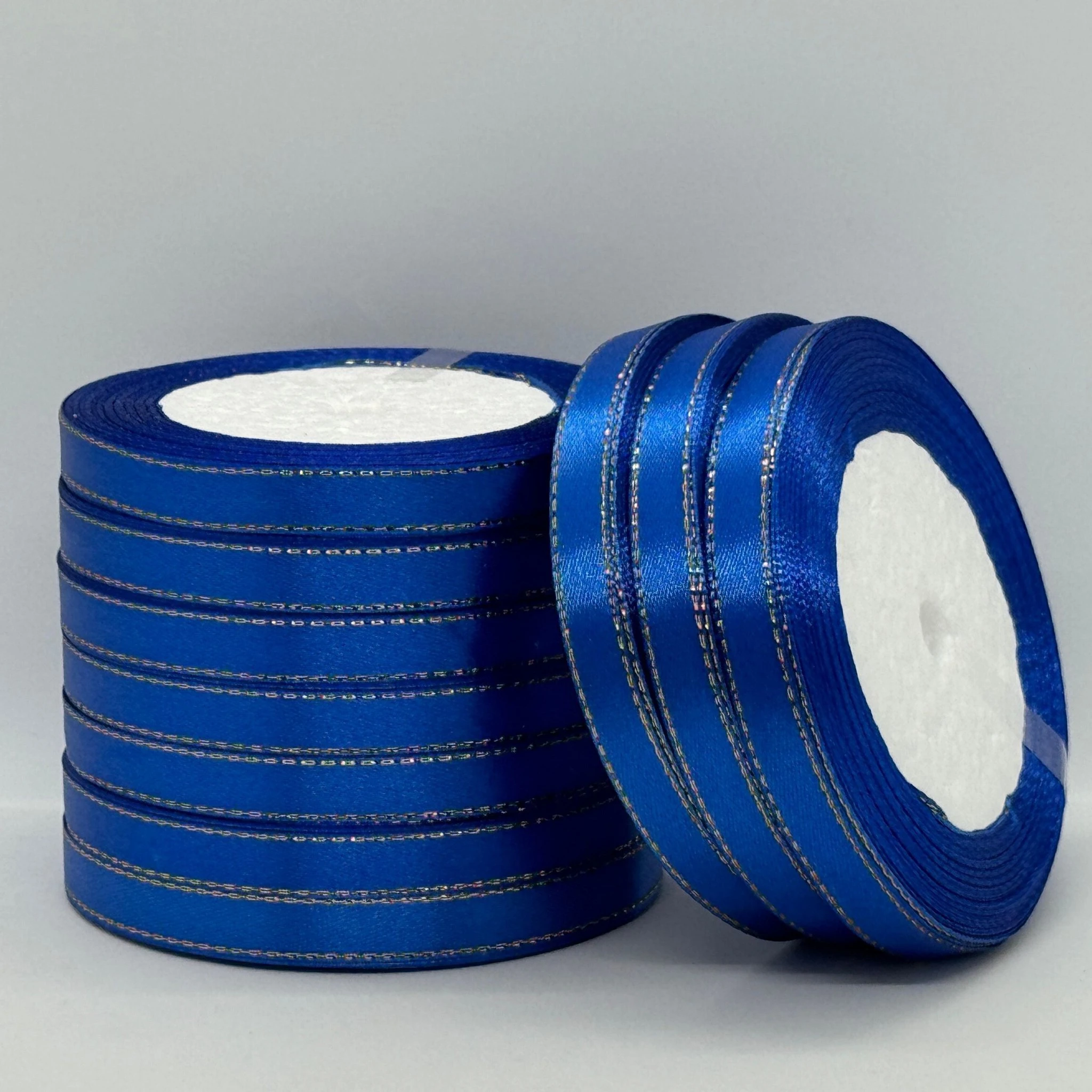 Атласная лента с люрекс 1 см+золото (22.75 м), 40 електрик