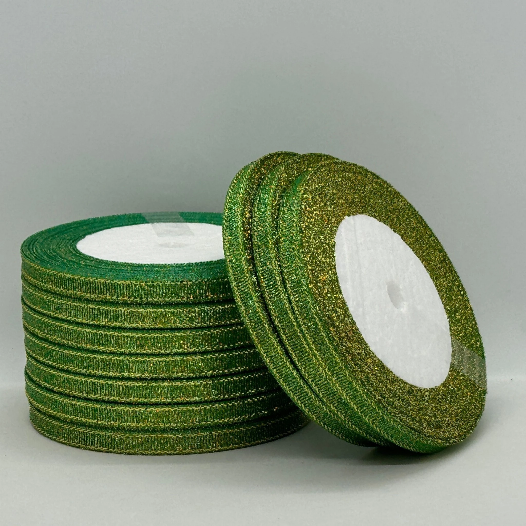 Лента парчовая 0,6 см (25 ярдов/22,75 м.), 19 зелений + золото