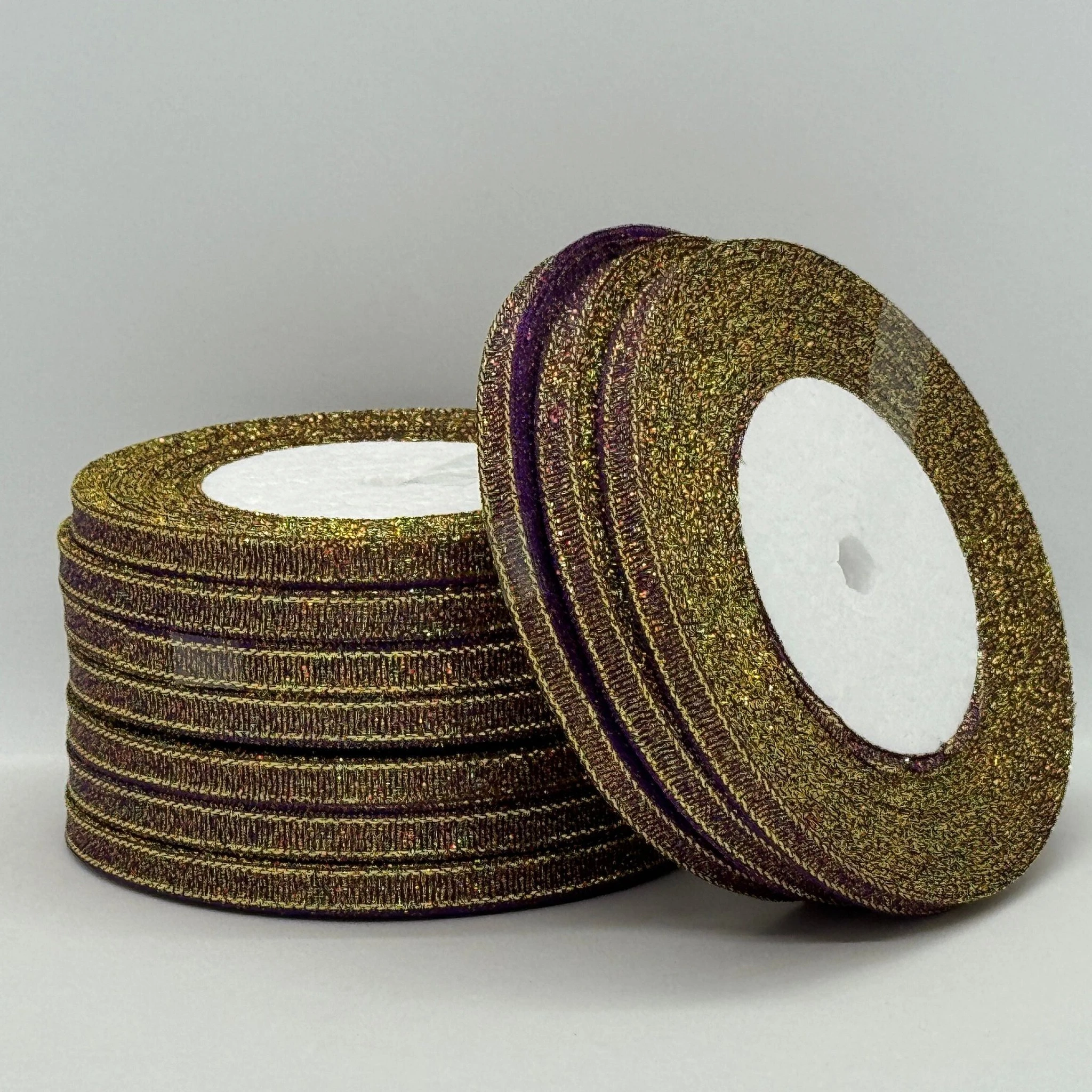 Лента парчовая 0,6 см (25 ярдов/22,75 м.), 46 баклажан + золото