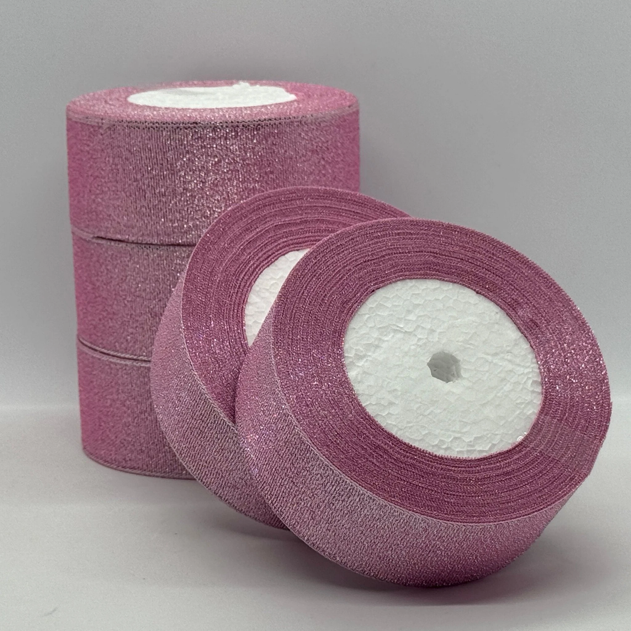 Лента парчевая 4 см (25 ярдов/22,75 м.), 4 світло рожевий + срібло