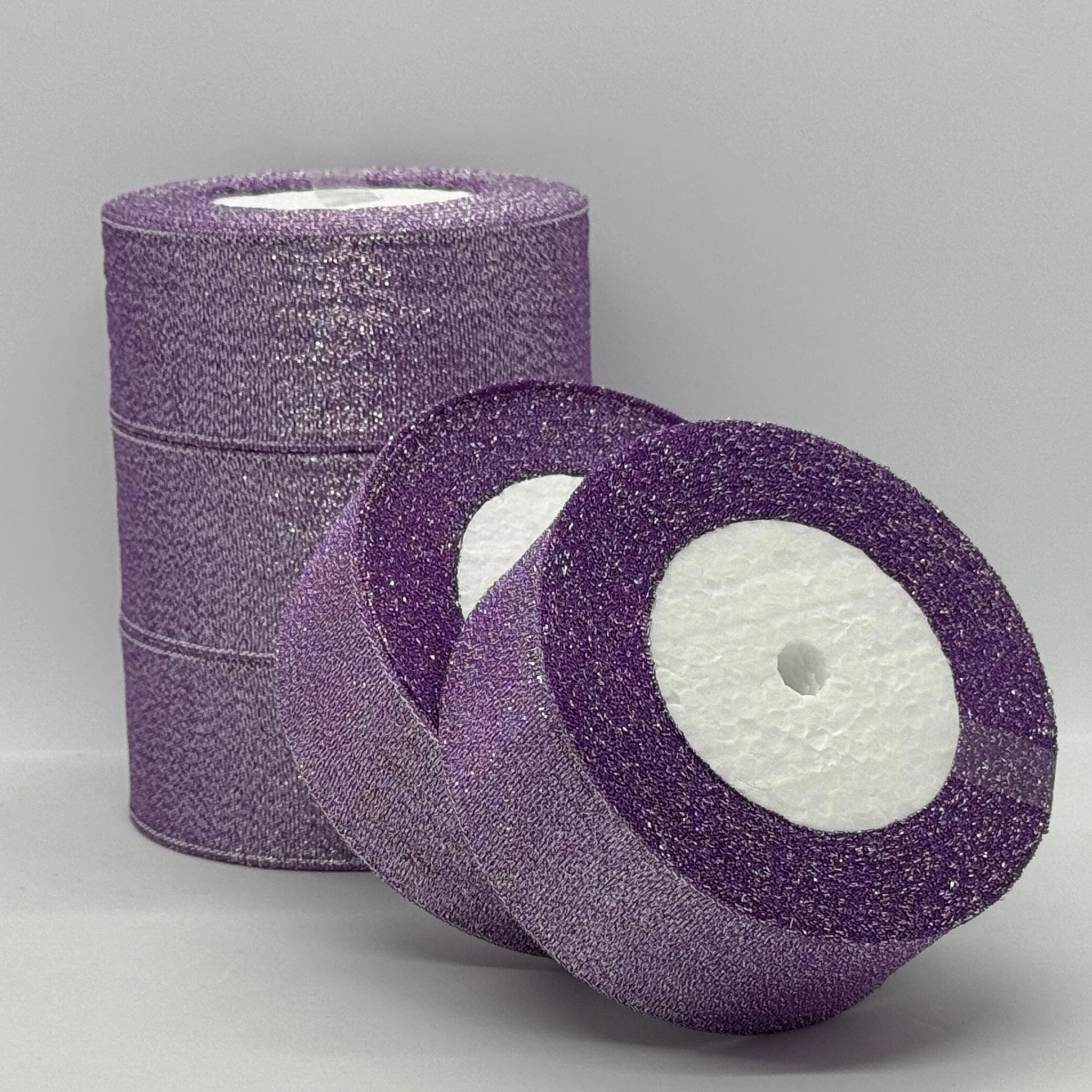 Лента парчевая 4 см (25 ярдов/22,75 м.), 69 фіолетовий + срібло