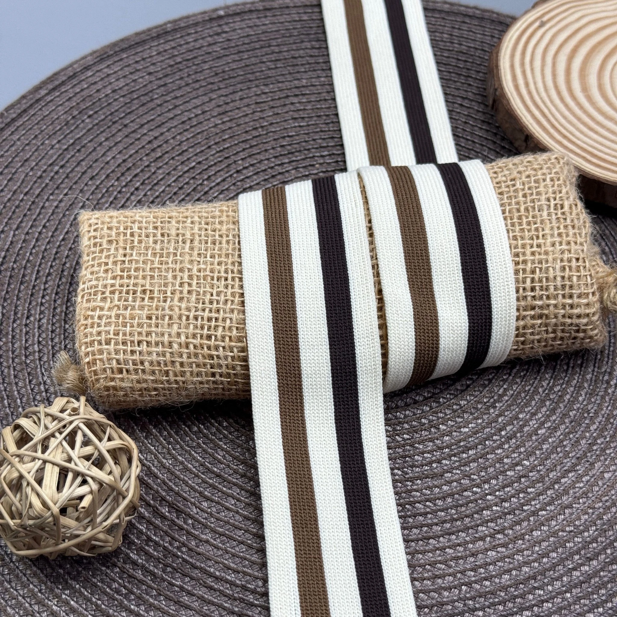 Трикотажный лампас Декор 4 см (1 м), білий+бежевий+коричневий