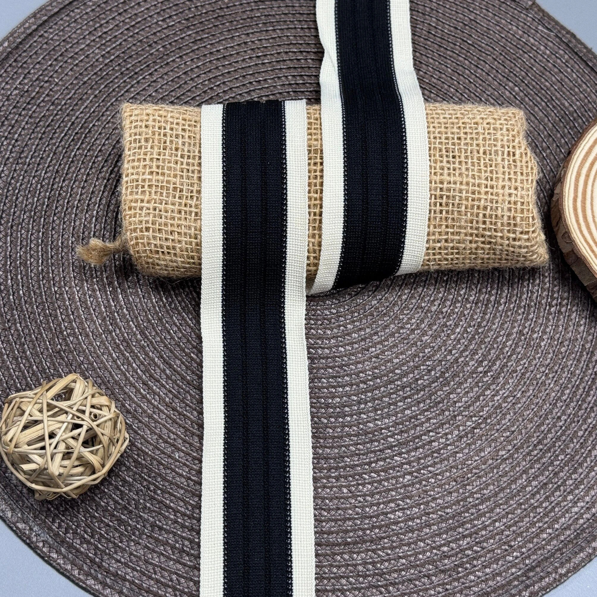 Лампас трикотажный Элегант 4 см (1 м), C:6 чорний+молочний