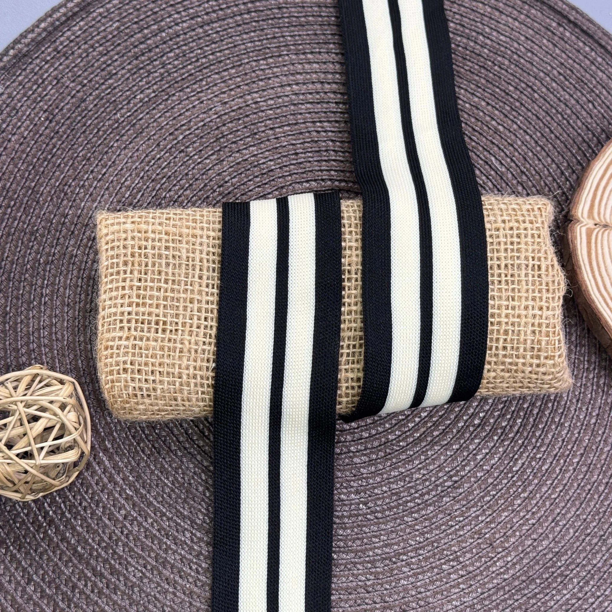 Лампас трикотажный Спорт 4 см (1 м), чорний+молочний