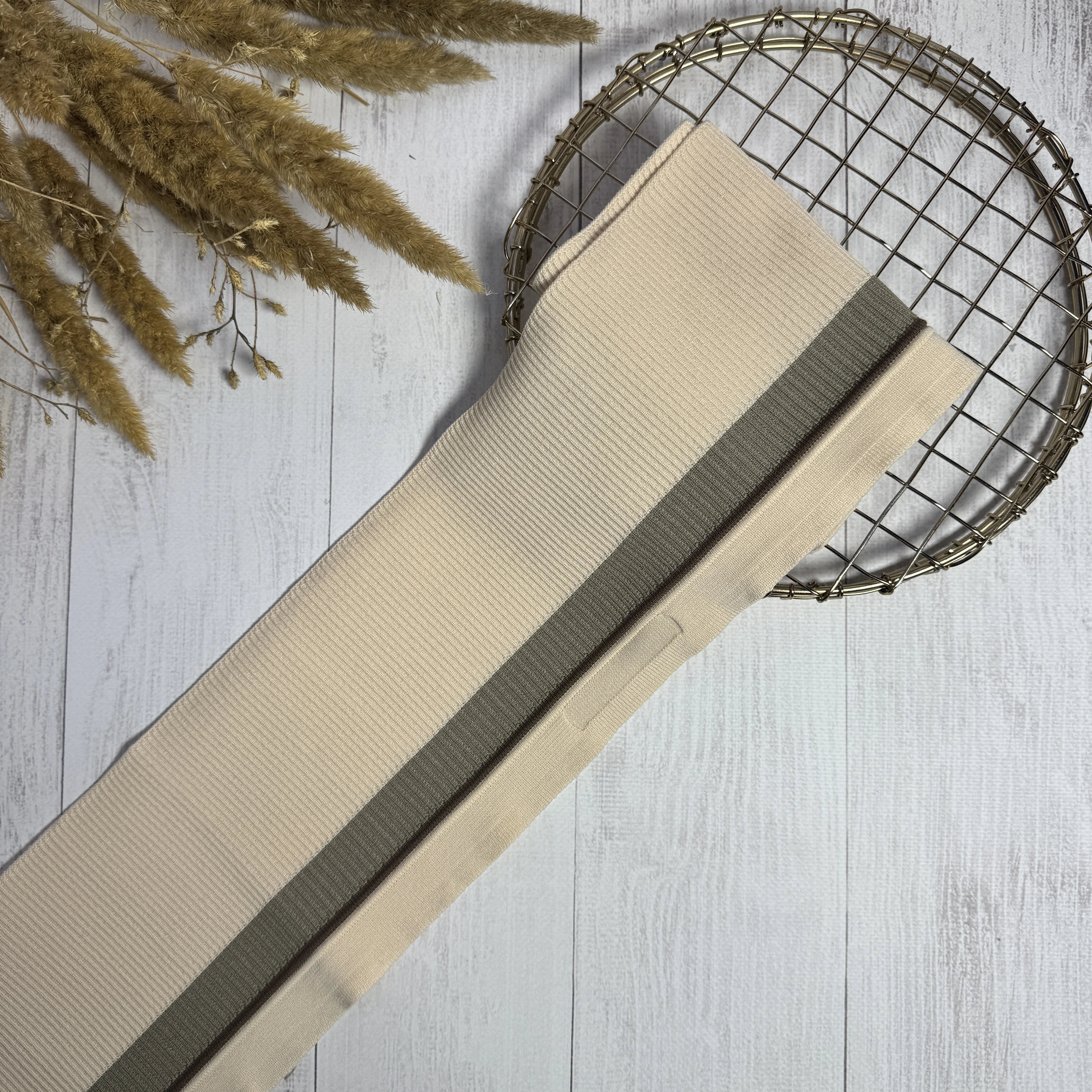 Трикотажный пояс довяз Рибана (13 см*90 см), молочний+зелений