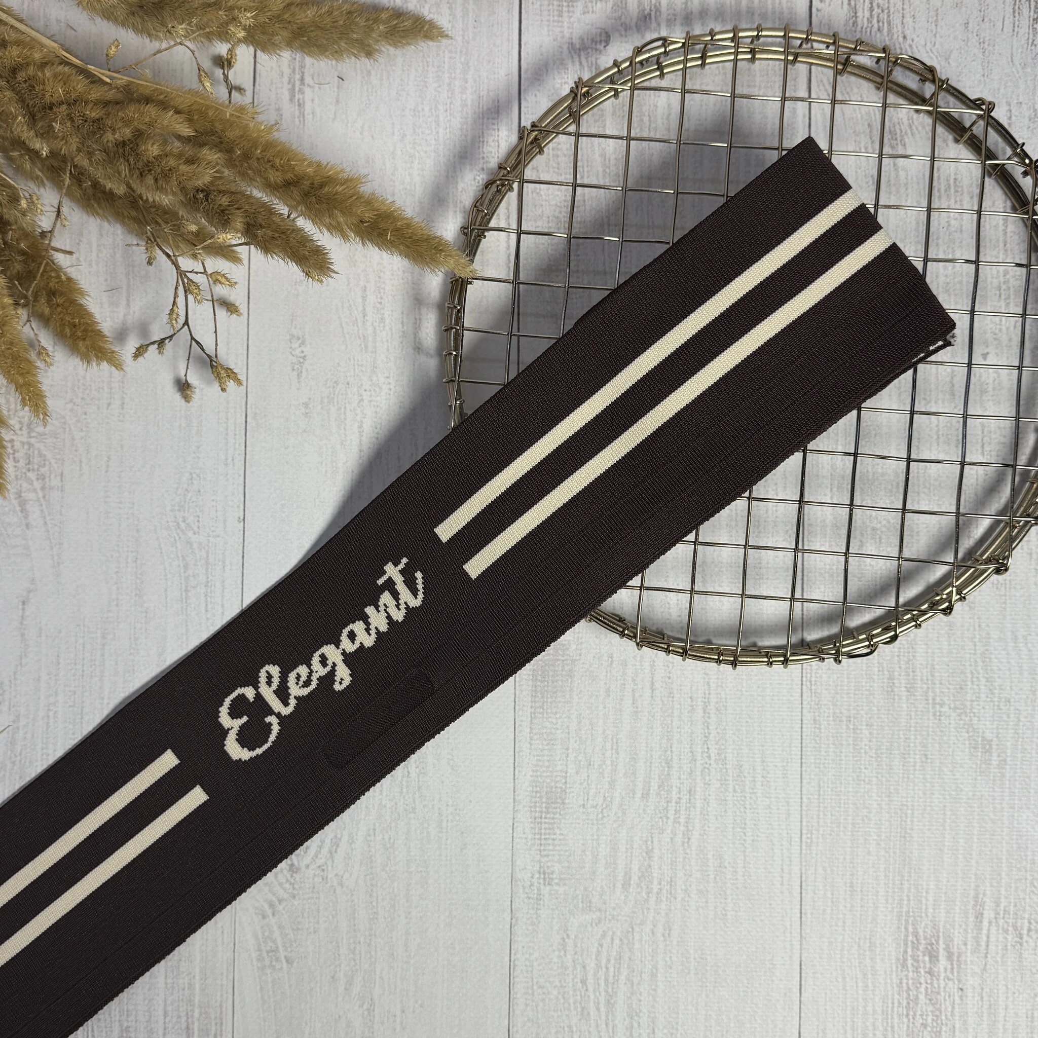 Трикотажный пояс довяз с надписью ЭЛЕГАНТНЫЙ (8,5 см*90 см), коричневий